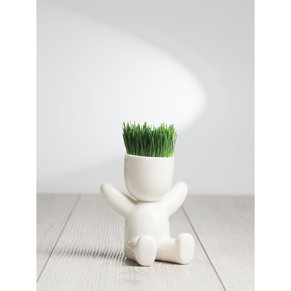 Фигурки Funky — экологичное украшение интерьера, кусочек зеленого газона в офисе или дома. Посадите волосы-травинки и наблюдайте, как меняется человечек. Вы можете сделать ему стильную стрижку, добавить настроения, нарисовав маркером лицо, — и поменять образ, когда трава снова подрастет.