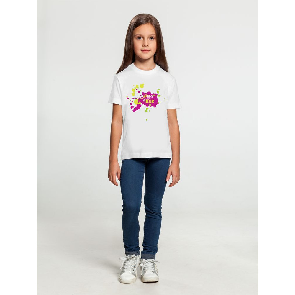Классическая футболка с боковыми швами (4 года) или без боковых швов (с 6 лет), с укрепляющей тесьмой по вороту. Край ворота в резинку с эластаном. Двойная прострочка по низу, на рукавах и на вороте спереди.