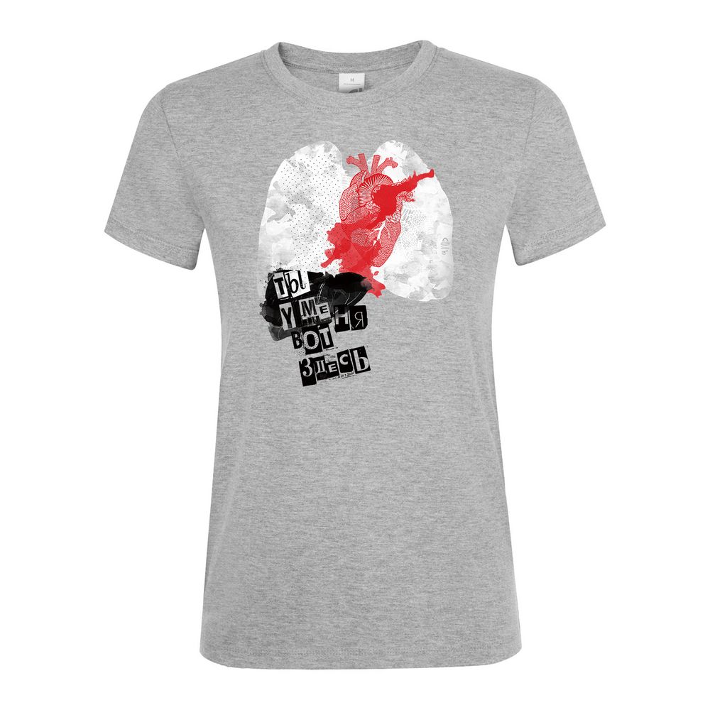 Футболка женская «Ты у меня вот здесь», серый меланж