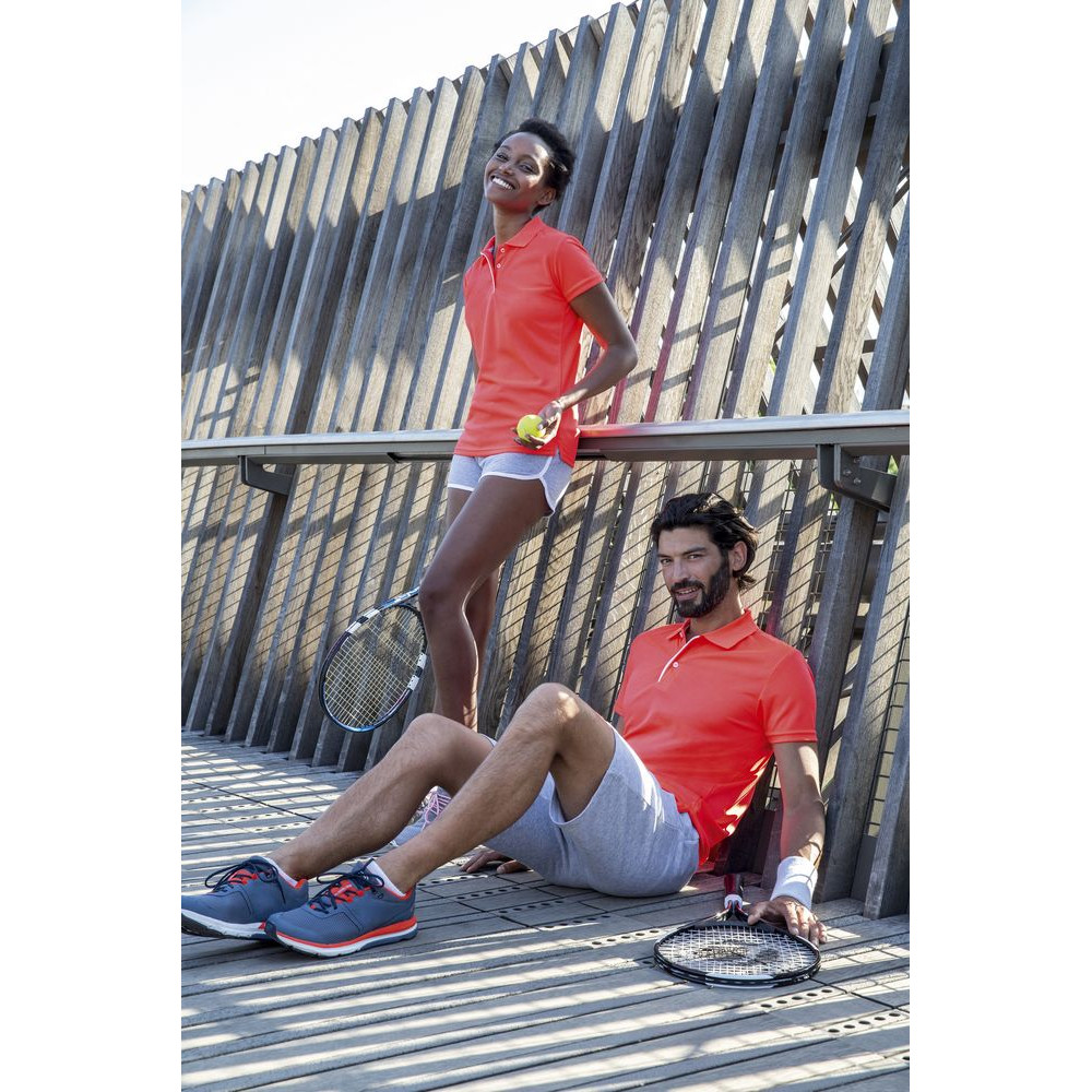Спортивная женская рубашка поло слегка приталенного силуэта. Легкий, дышащий и тянущийся материал быстро сохнет и не сковывает движения, что позволяется выложиться на максимум при занятии спортом.