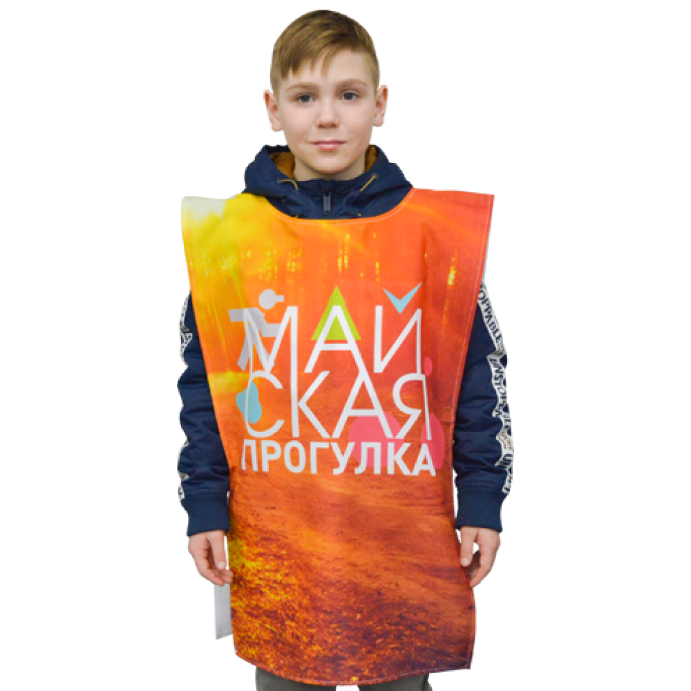 Выберите свой размер и загрузите дизайн, чтобы создать уникальную манишку с полной запечаткой от Фабрика рекламы "ОЛИМП".