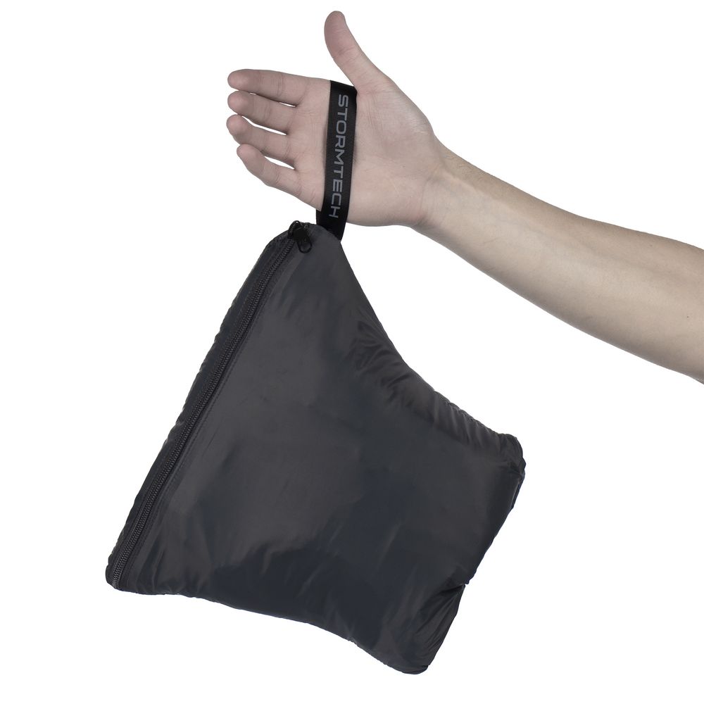 Эргономичный и ультралегкий жилет приталенного силуэта складывается в карман, расположенный внутри на спинке, и превращается в дорожную подушку.