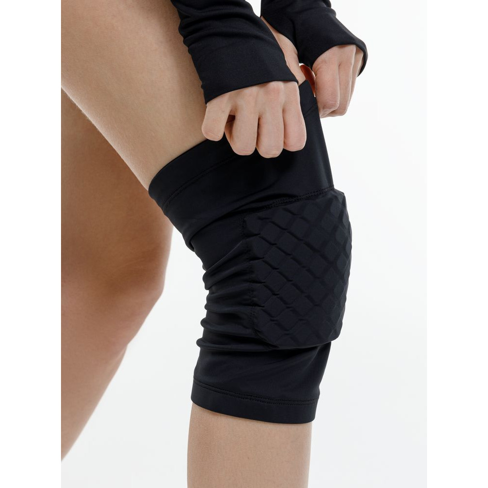 Мягкий вспененный пластик (ЭВА) пружинит, надежно защищая колено от ударов, а сотовая конструкция вставки не препятствует сгибанию ноги в колене.