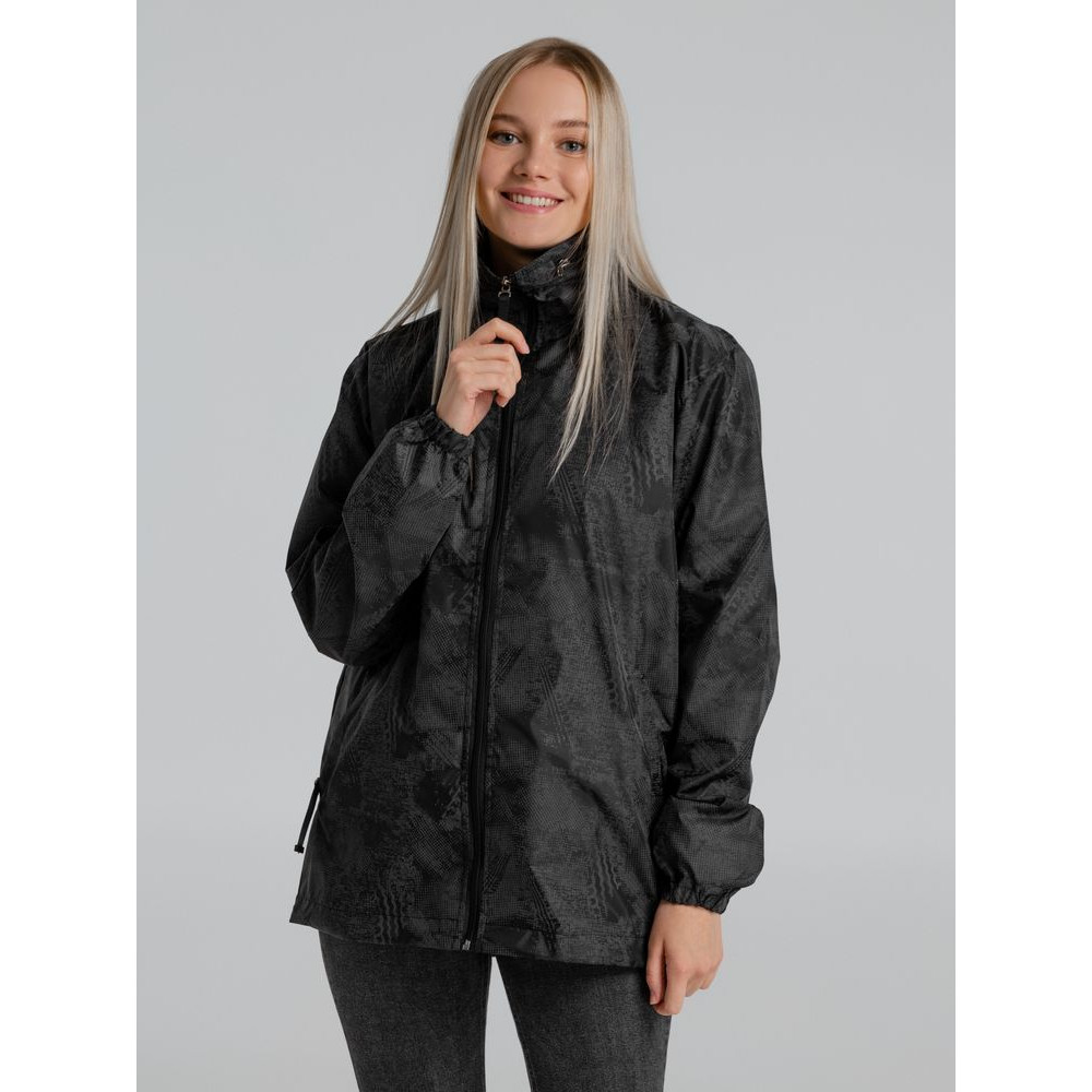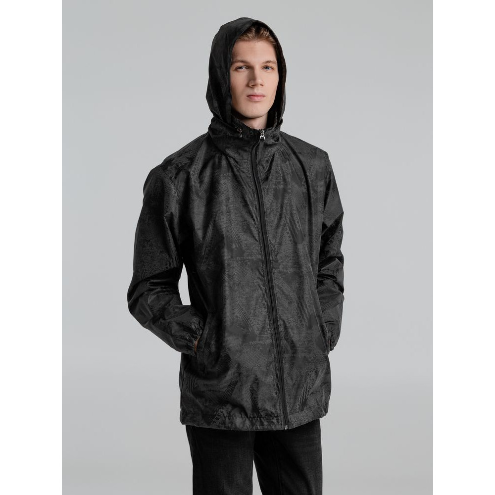 Ветровка с капюшоном из ткани с водоотталкивающей пропиткой и светоотражающим рисунком.