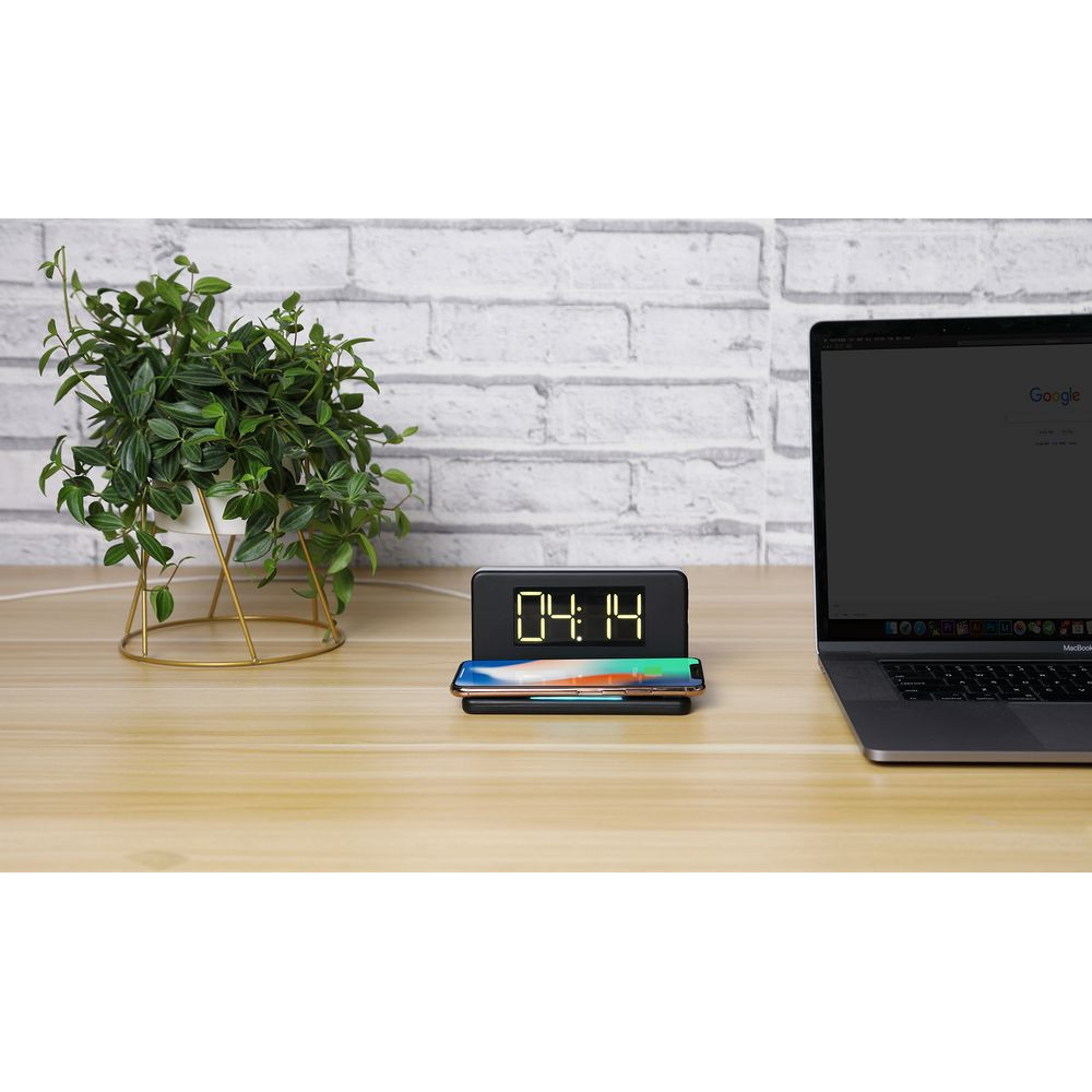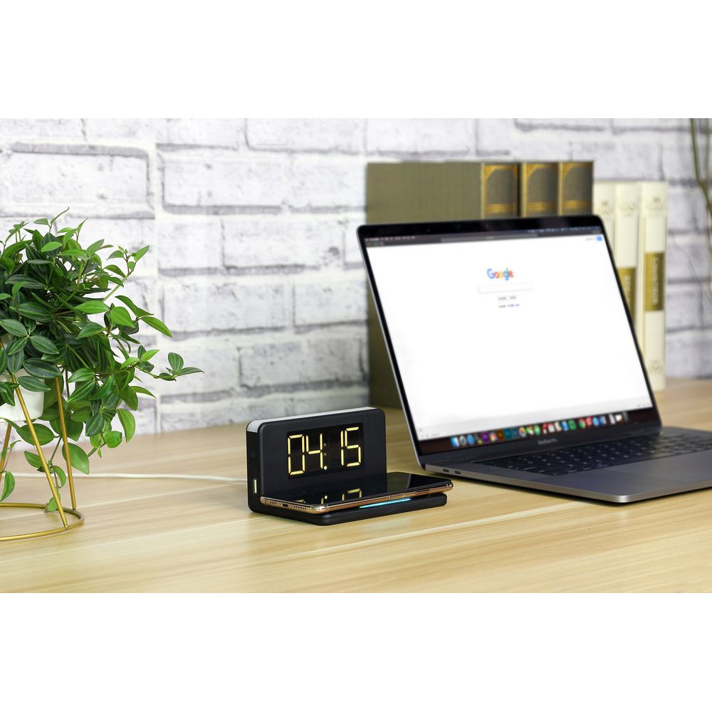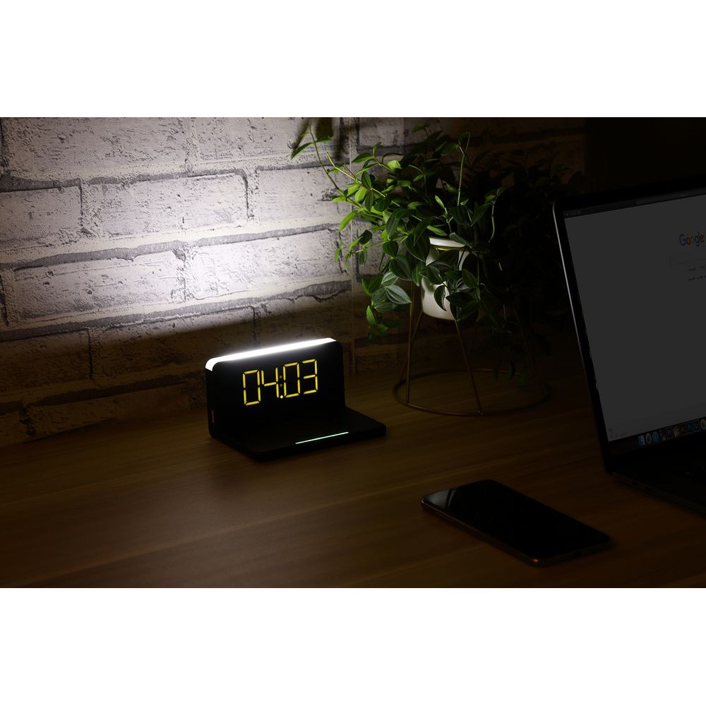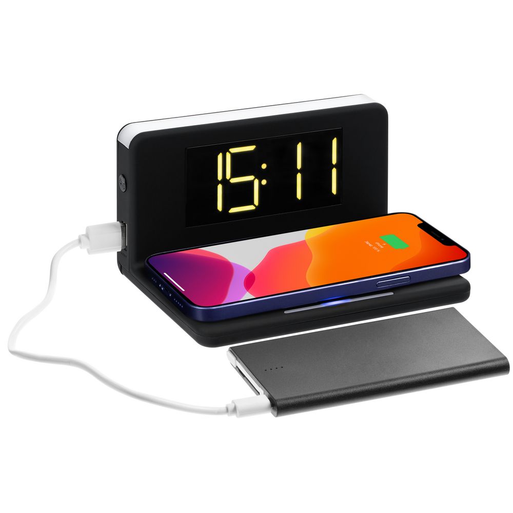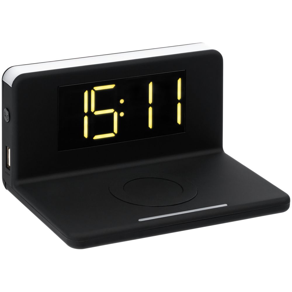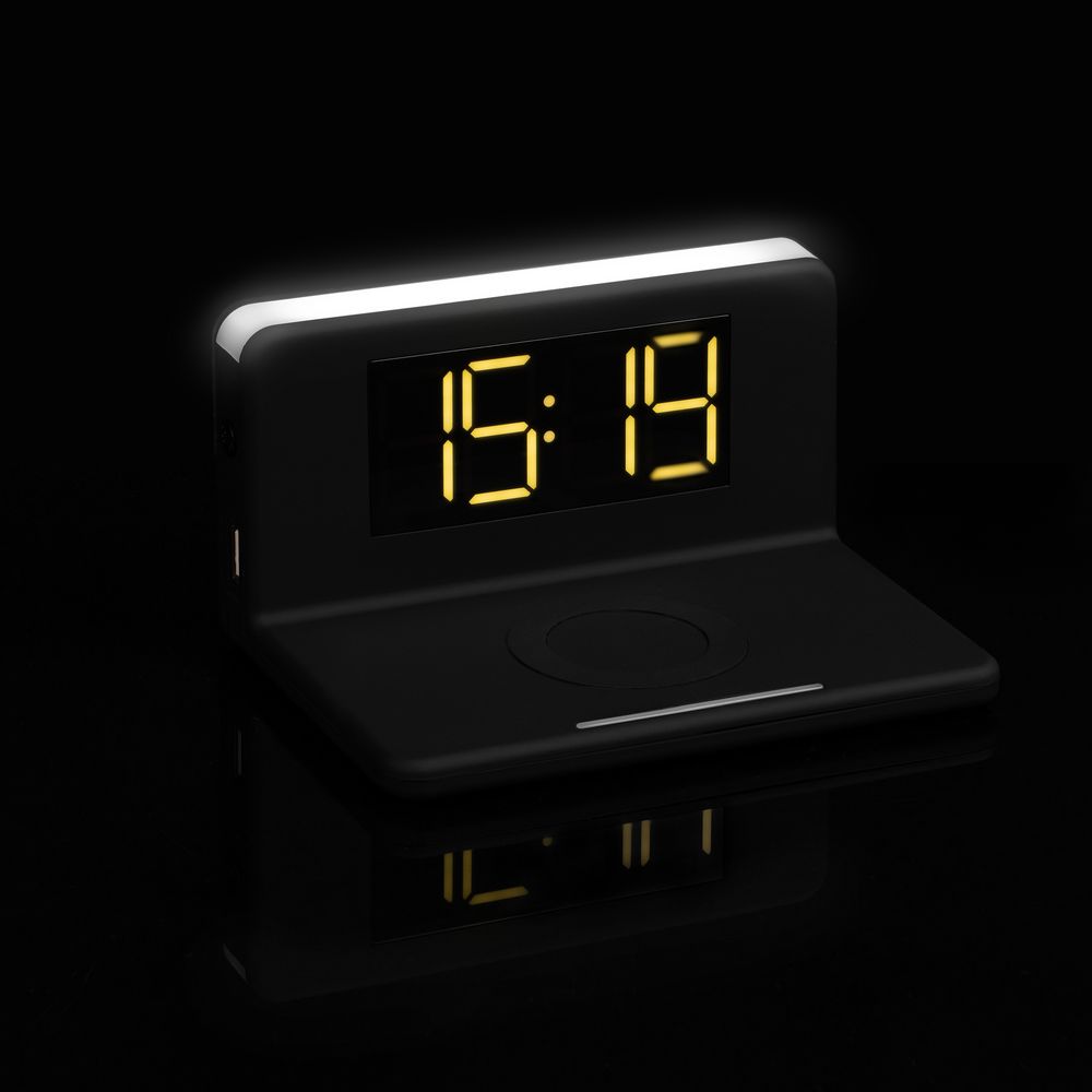 Часы настольные с беспроводным зарядным устройством Pitstop, черные