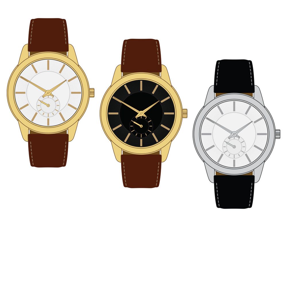 - Ремешок из натуральной кожи с тиснением под кожу крокодила. Коричневого цвета для золотистого корпуса и черного цвета для серебристого корпуса.