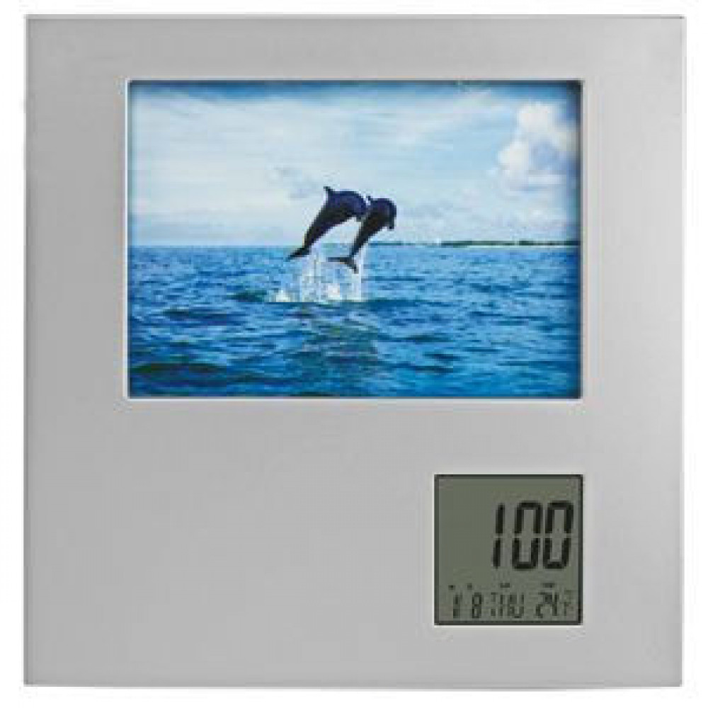 Параметры: Фоторамка с часами; 18х2х18 см; пластик; тампопечать;