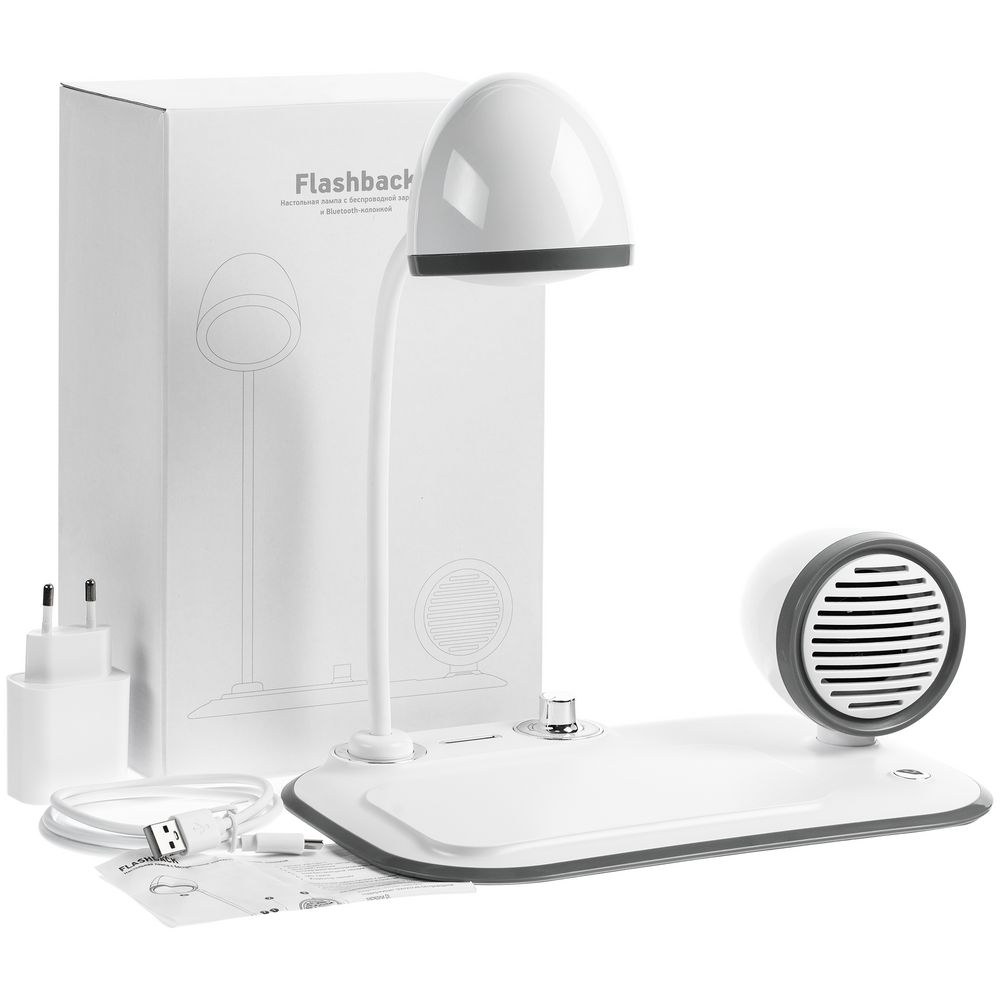 Лампа с колонкой и беспроводной зарядкой Flashback, белая