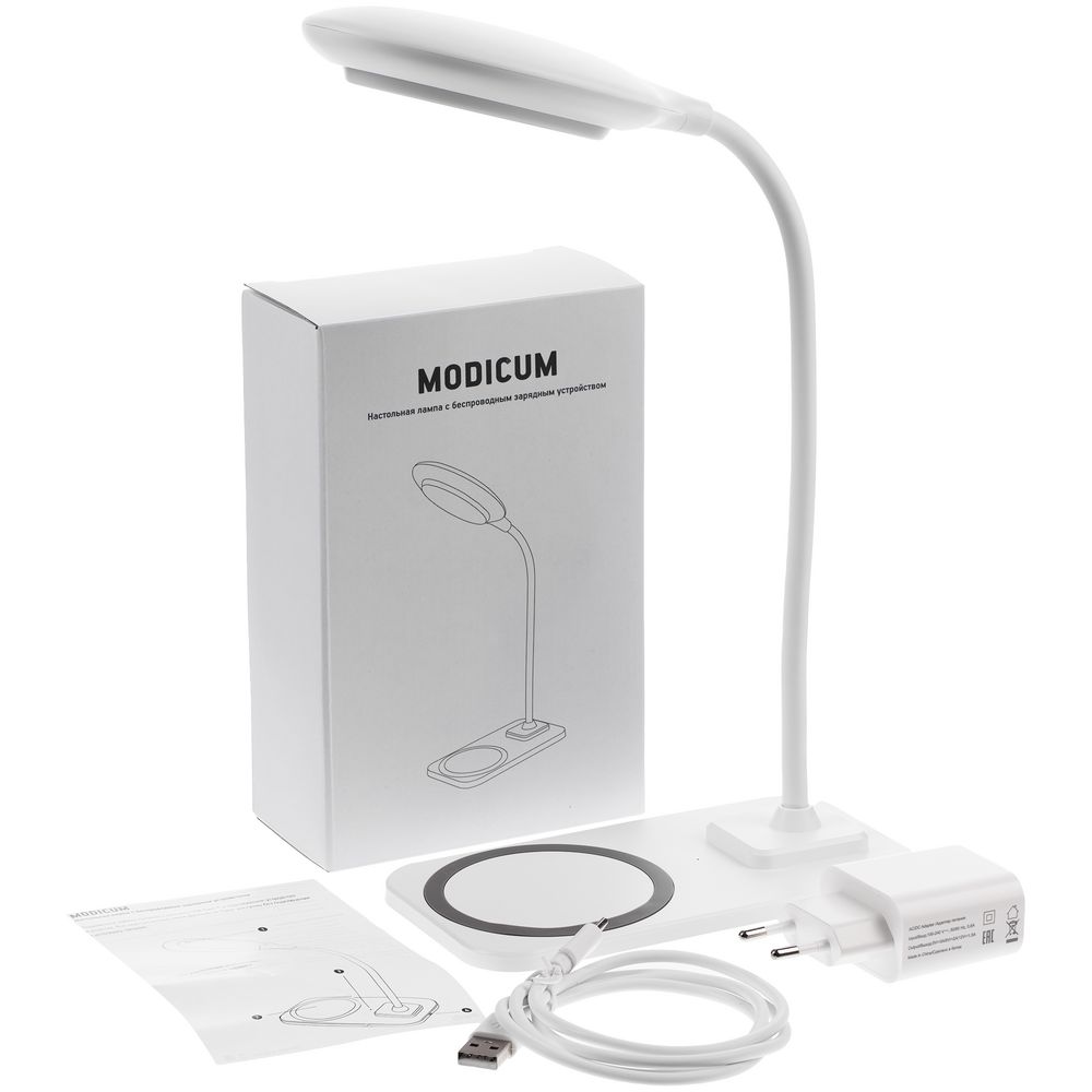 Настольная лампа с беспроводной зарядкой Modicum, белая 1999 ₽