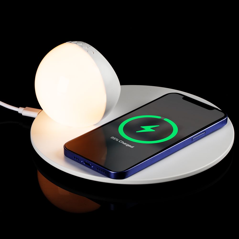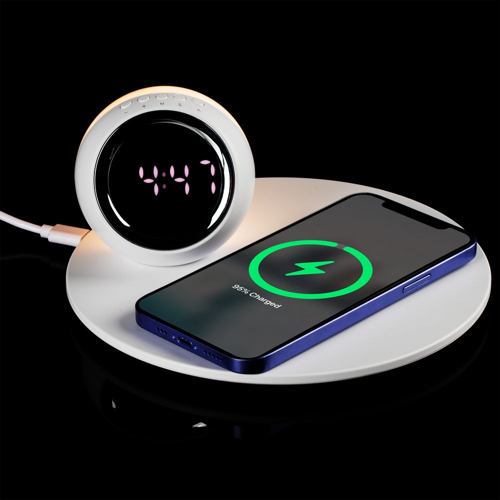 • Станция беспроводной зарядки с часами и подсветкой GlobeBee, белая