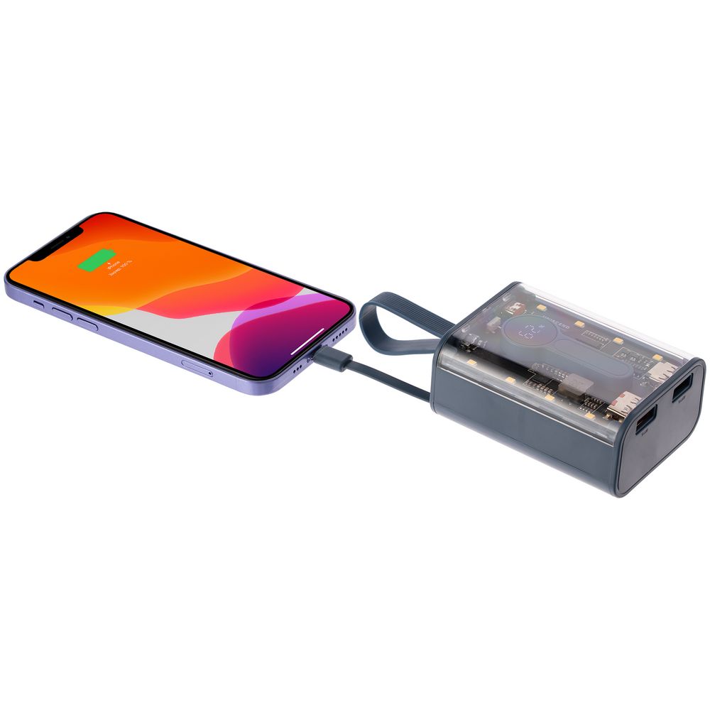 – Выход USB-A QC (оранжевый): 5 В, 3 A; 9 В, 2 A/12 В, 1,5 A, USB-A (черный), Type-C, Lightning (кабели): 5В, 2А