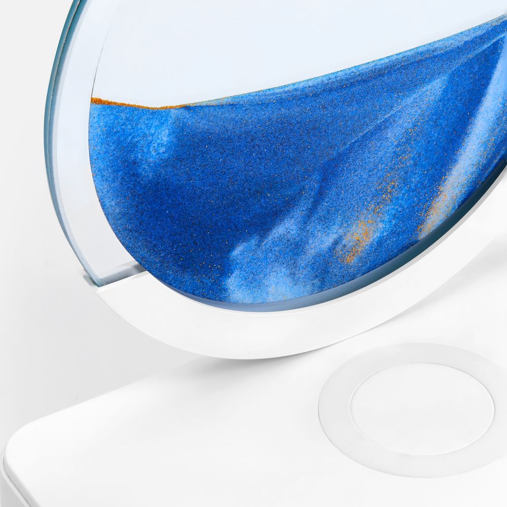 Если перевернуть круглую стеклянную вставку с песком, можно расслабленно понаблюдать  за плавным перемещением песчинок в жидкости. Такой полезный для глаз антистресс с легкостью успокоит во время напряженного рабочего дня. Регулируемая подсветка внутри рамки создает еще больший акцент на картине, превращая Sandflow в стильный точечный источник света.