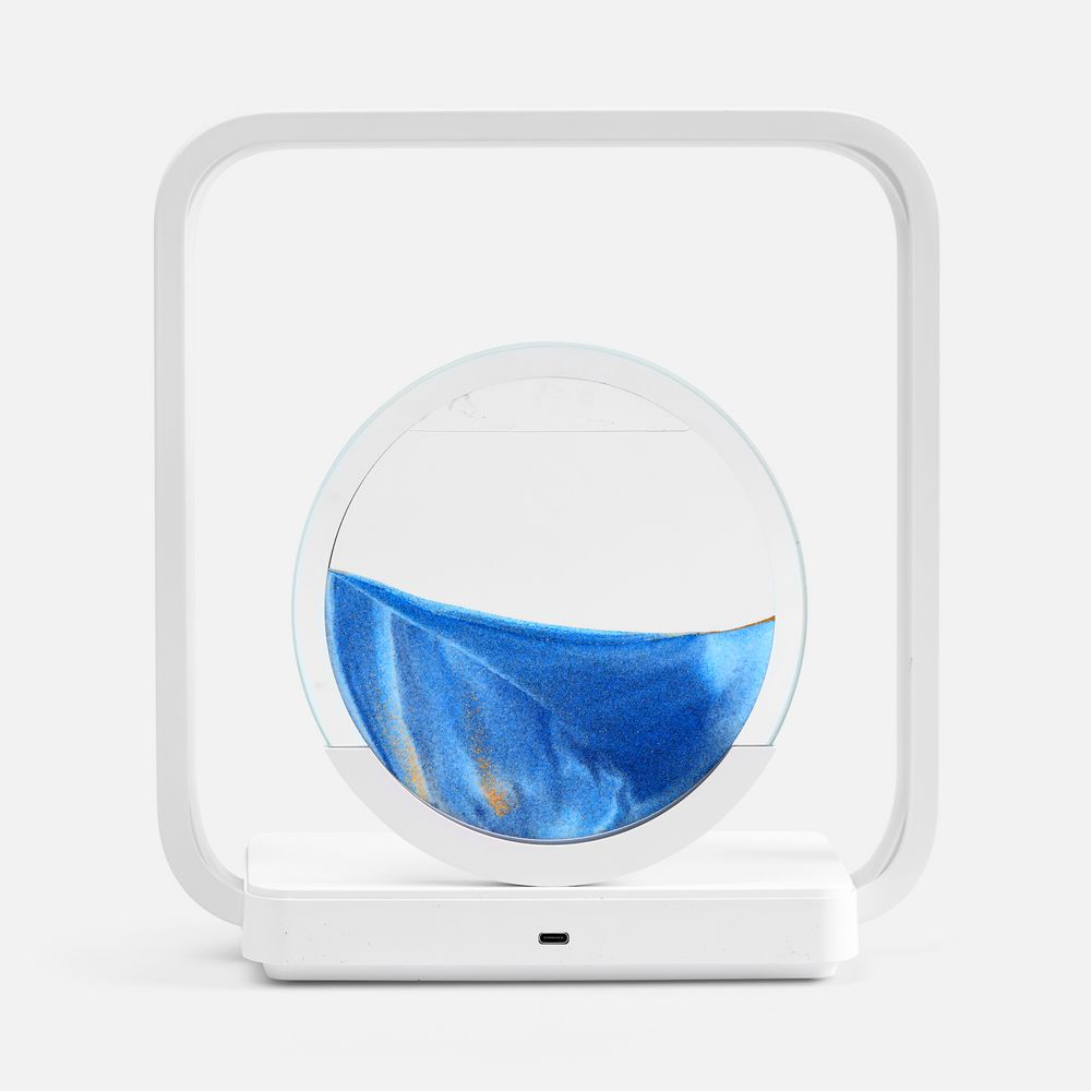 Sandflow — это одновременно и интерьерный светильник, и песочная картина-антистресс, и станция быстрой беспроводной зарядки для телефона.