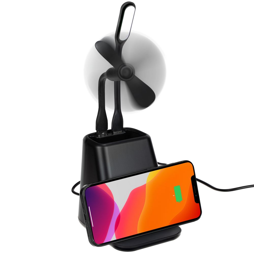 Настольный органайзер с зарядкой, лампой, вентилятором и подсветкой логотипа powerTower, черный
