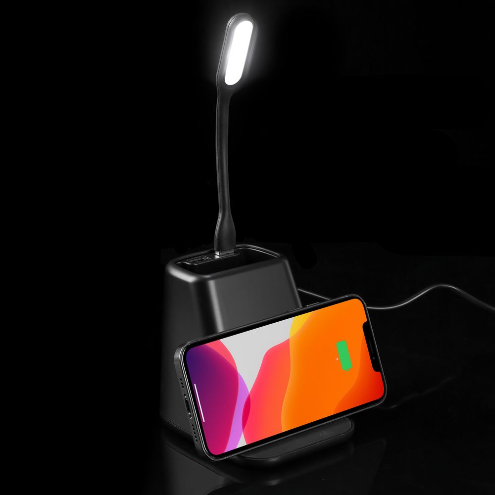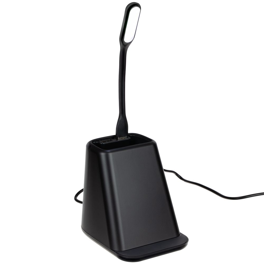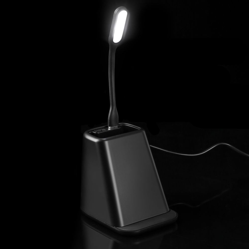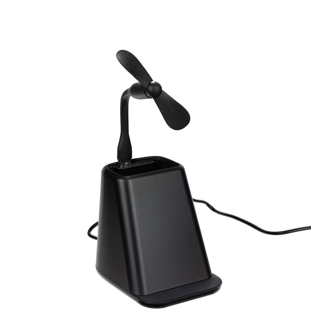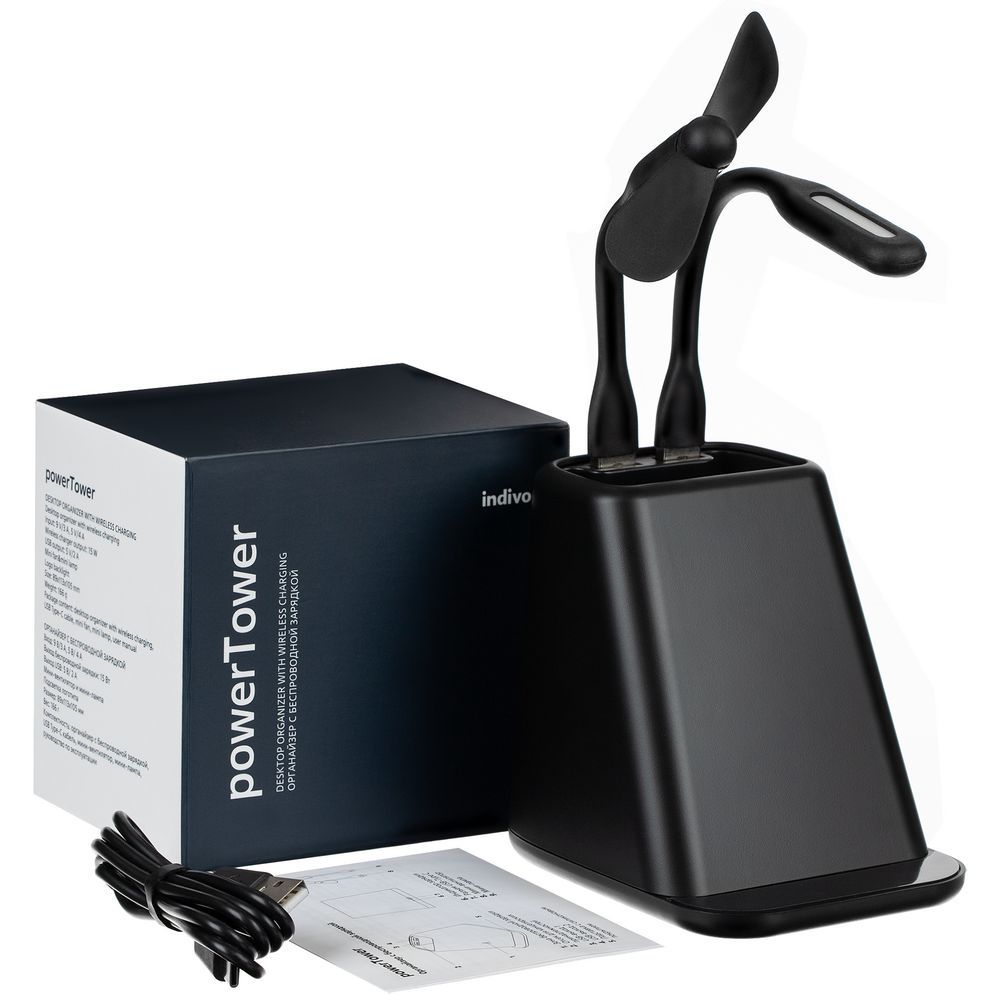 • Настольный органайзер с зарядкой, лампой, вентилятором и подсветкой логотипа powerTower, черный