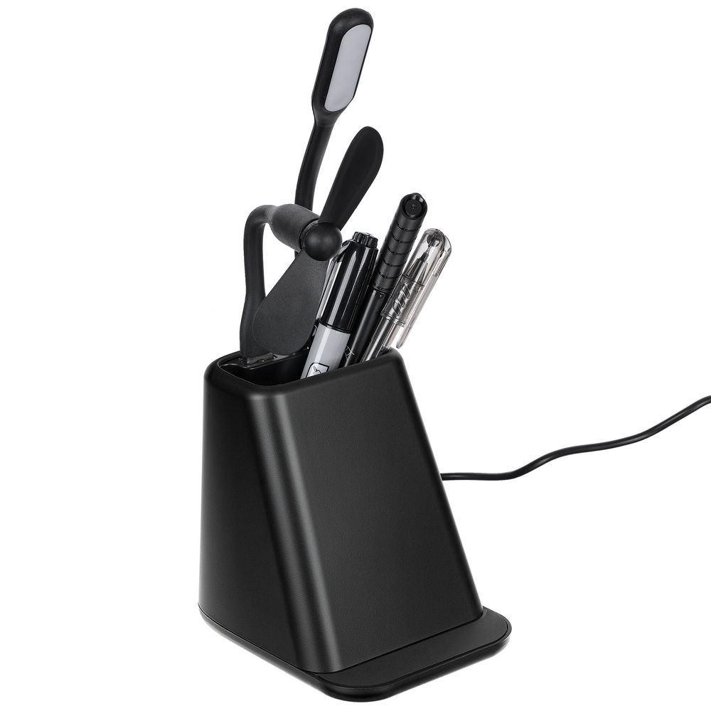 Настольный органайзер с зарядкой, лампой, вентилятором и подсветкой логотипа powerTower, черный 1890 ₽