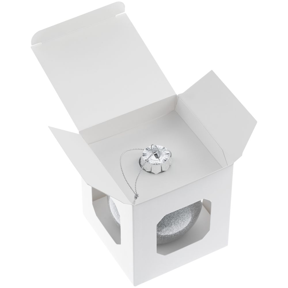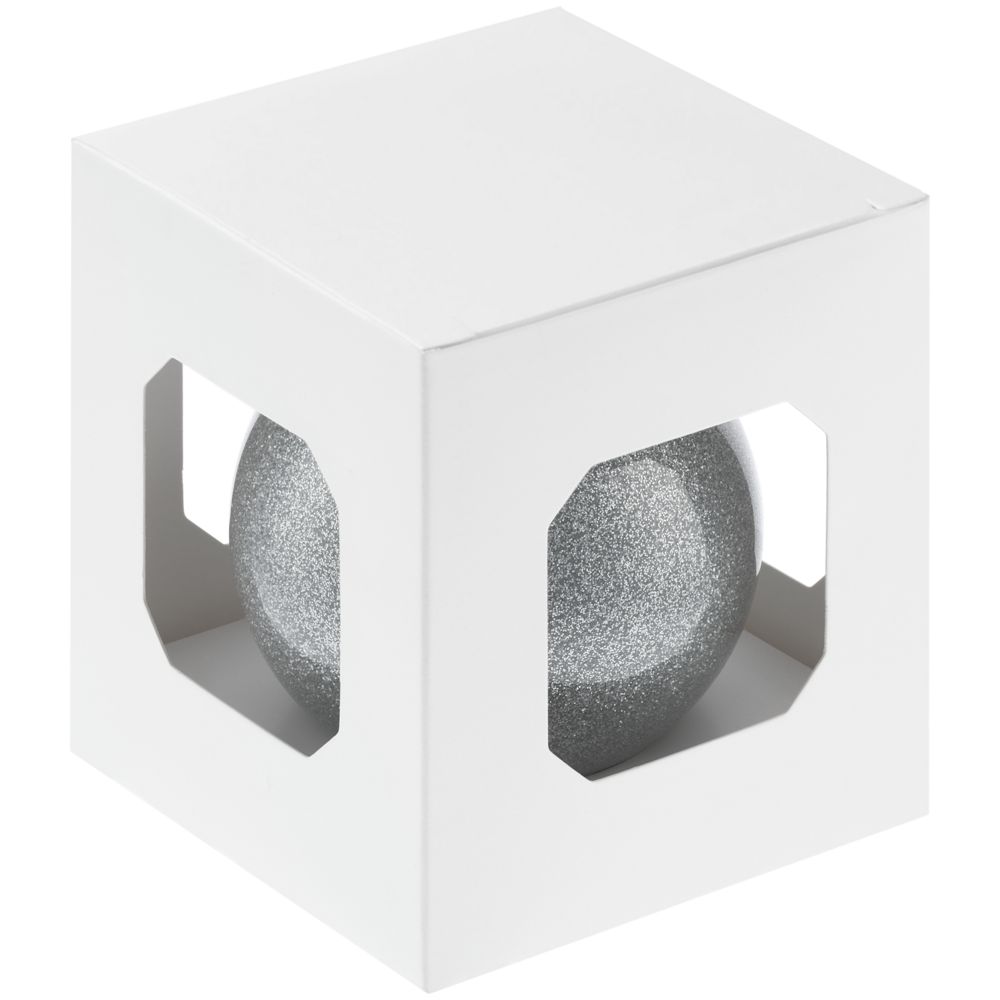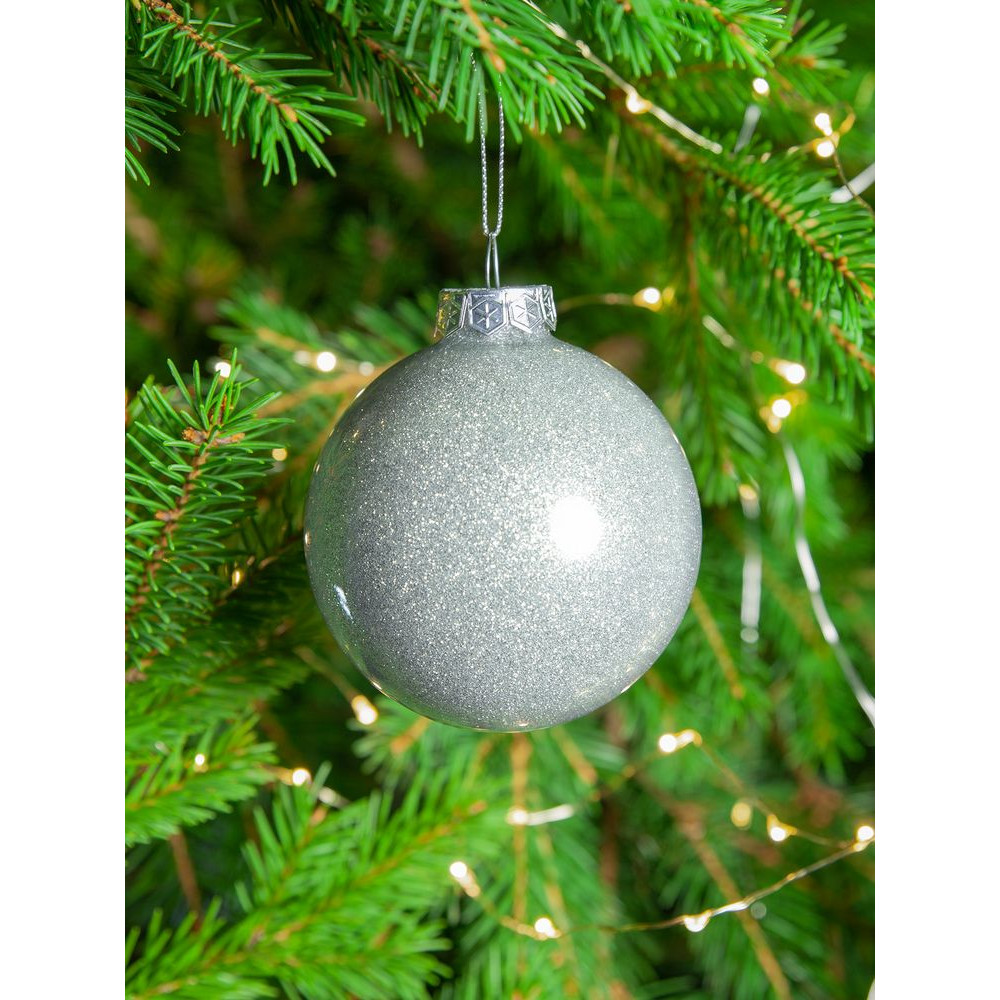 Елочный шар Finery Shine, 8 см, глянцевый серебристый с глиттером