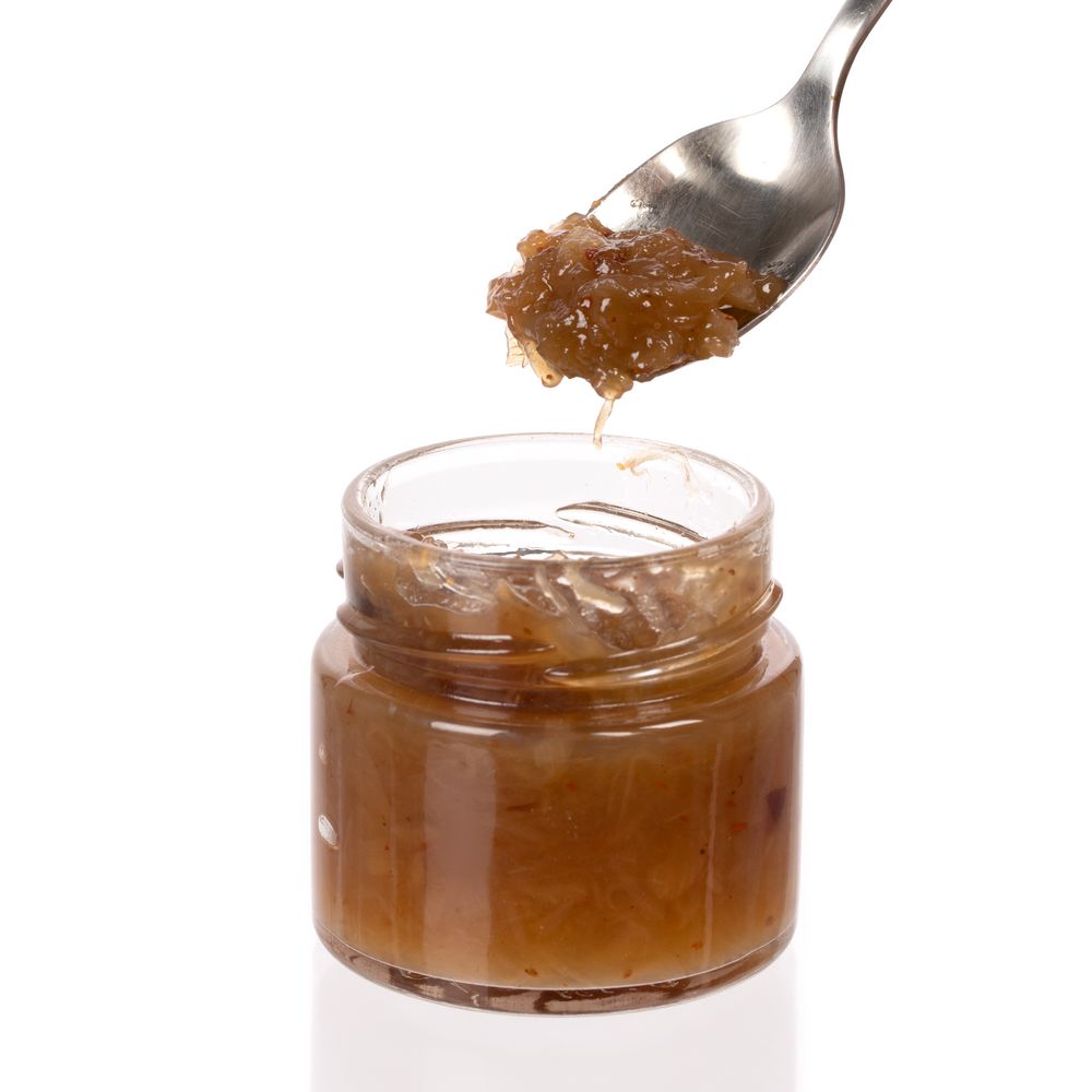 Новое прочтение лукового мармелада: он приправлен щедрой порцией клюквы, обладает приятной кислинкой бальзамического уксуса и сбалансированной остротой перца чили.