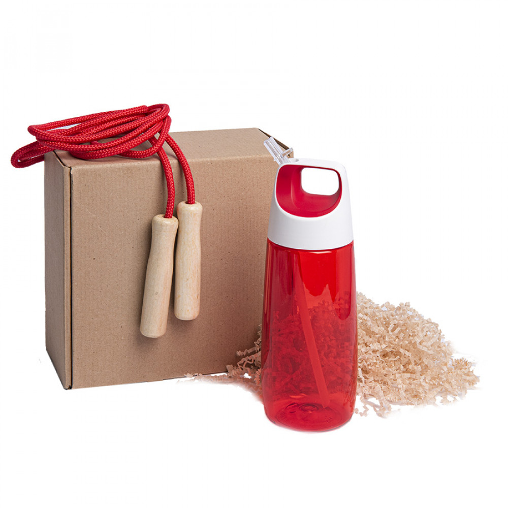 Набор подарочный INMODE: бутылка для воды, скакалка, стружка, коробка, красный