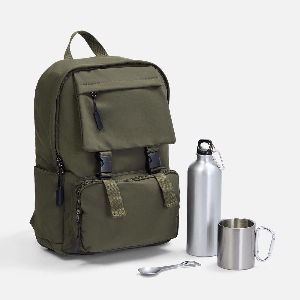 Походный набор TrekKing создан для тех, кто не привык сидеть на месте, ценит активный отдых на природе и новые впечатления. В городском рюкзаке с легким outdoor-акцентом здесь собрано самое главное, что всегда поддержит в пути, на пикнике или на прогулке — и выдержано в классическом походном стиле.
