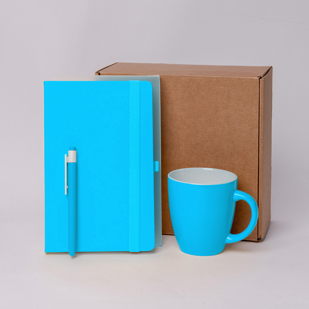 Параметры: Подарочный набор JOY: блокнот, ручка, кружка, коробка, стружка; голубой