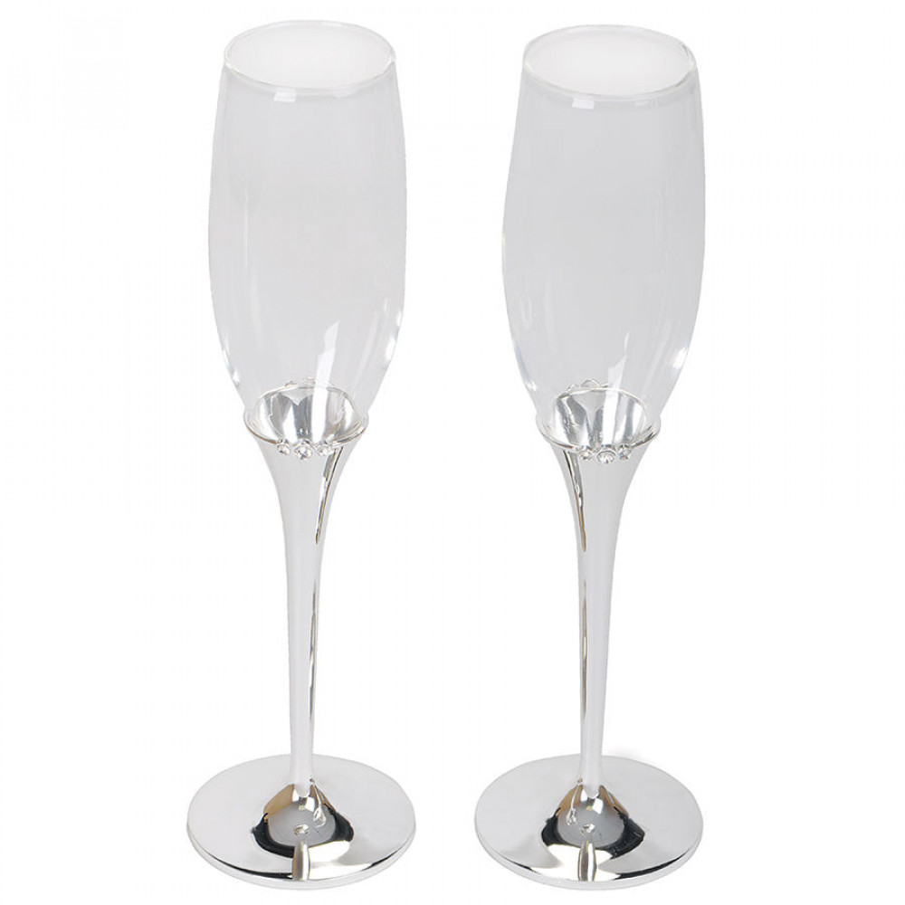 Параметры: Бокалы для шампанского "Crystal" (2шт), D=6,8см, Н=25,2см, стекло, посеребренный металл,лаковое покр