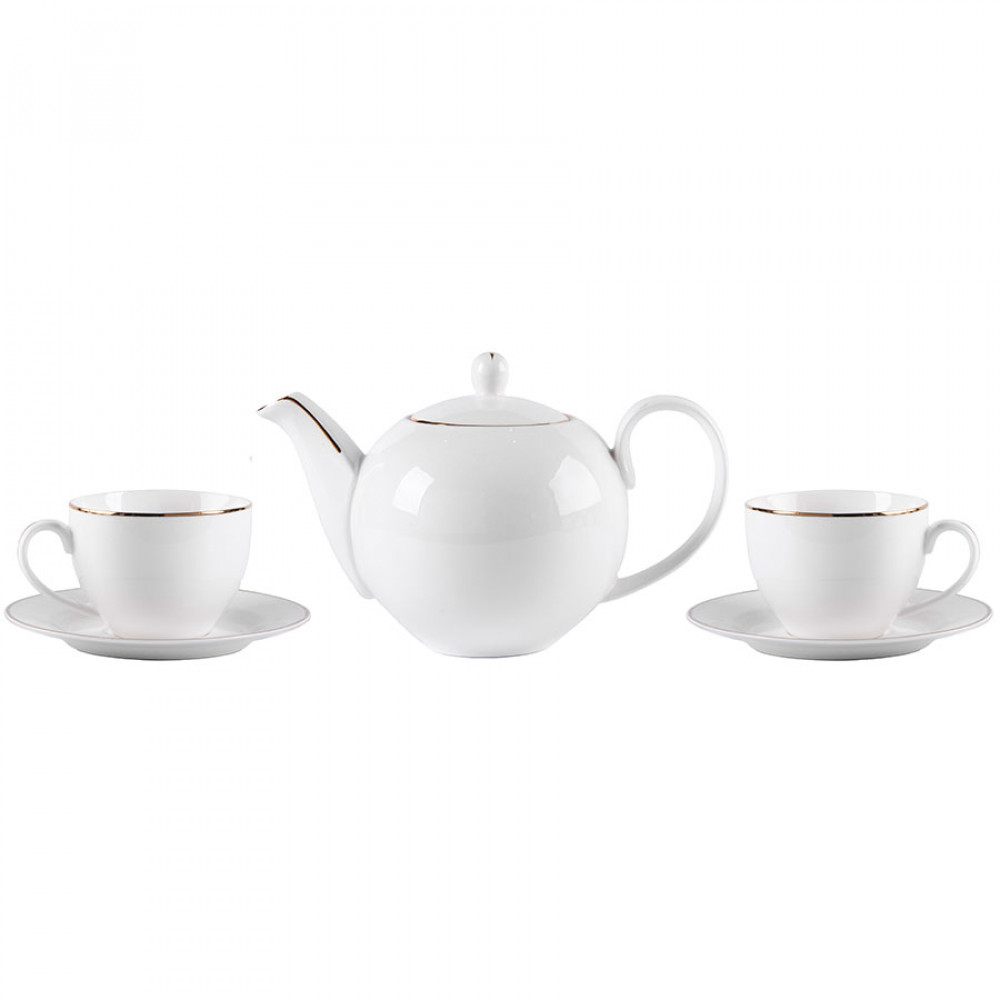 Чайник выполнен в классическом стиле с удобной ручкой. Объем в 1200 мл. рассчитан на уютное коллективное чаепитие. В комплекте две чайных пары, онипредставлены в виде чашек объемом 250 мл. и практичных блюдец с выемкой для фиксации чашек.