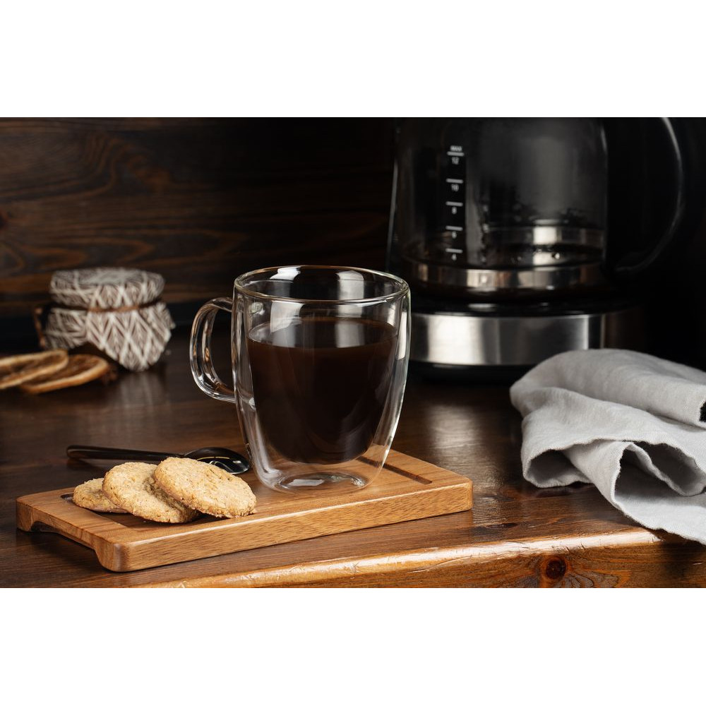 Кружка Seifenblase выполнена из боросиликатного стекла и предназначена для подачи холодных и горячих напитков. Благодаря двойным стенкам из тонкого боросиликатного стекла кружка практически ничего не весит, отлично сохраняет тепло и вмещает целых 350 мл любимого напитка!Емкость 350 мл.