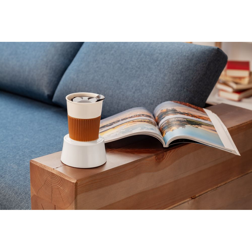 Подставку можно расположить на рабочем столе, прикроватной тумбочке или в машине — в любом месте Tabletop не даст чашке разбиться, а ее содержимому пролиться. Липкое основание конструкции представляет из себя поверхность из множества микроскопических присосок, поэтому уронить и даже сдвинуть подставку с места очень непросто — любимая чашка и клавиатура будут под надежной защитой. Благодаря внутренней вставке подходит для емкостей разного диаметра.