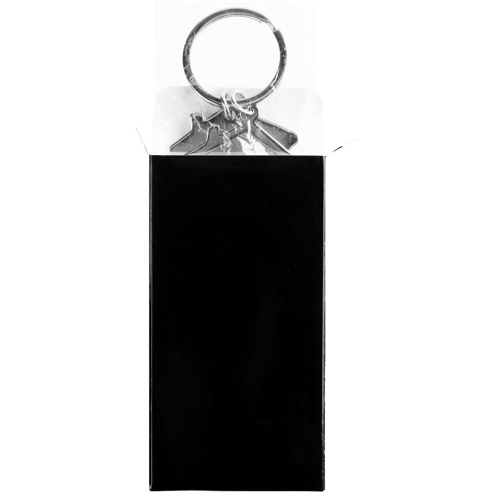 Металлический брелок с двумя подвесками в форме домика станет хорошим промосувениром для строительных корпораций, агентств недвижимости и компаний, оказывающих услуги по ремонту.