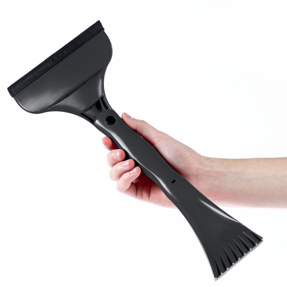 Скребок Water Low состоит из двух половинок: скребка с усиленной кромкой и зубьями-ледорубами и водосгона с упругой резиновой накладкой. Для удобства части скребка можно разъединить.