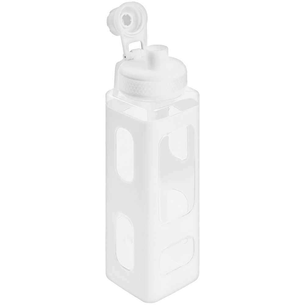 Вместительная квадратная бутылка для воды. Прозрачные окошки позволяют визуально оценить, сколько жидкости осталось внутри.