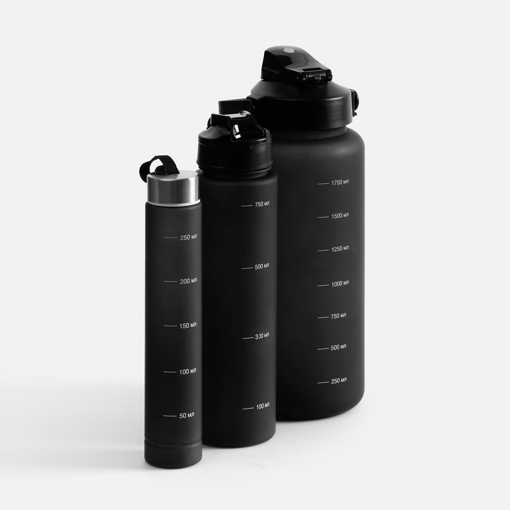 «Папа, мама, я — спортивная семья!». Набор спортивных бутылок Aquapack — настоящая находка: это три емкости разного объема, вложенные одна в другую по принципу матрешки. Прочные и эстетичные бутылки с черным матовым покрытием подойдут для тренировок, спортивных мероприятий, туристических походов и семейных пикников на природе.