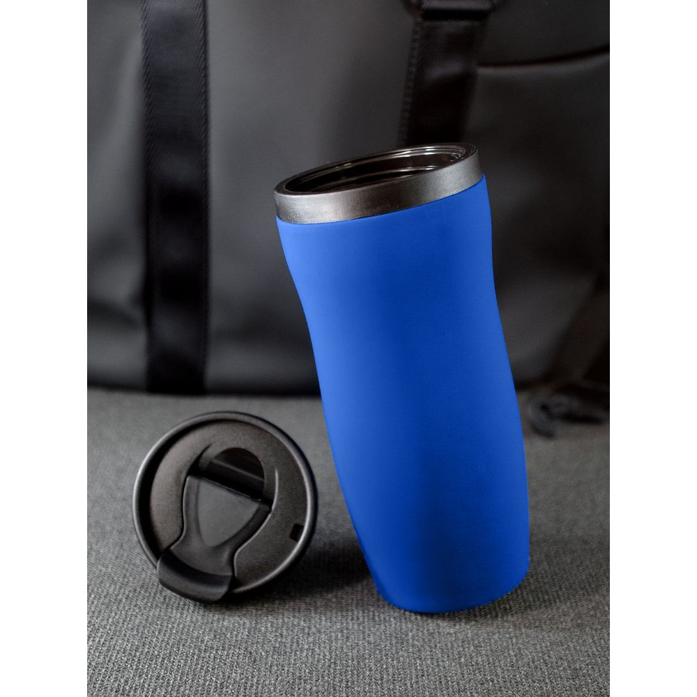 Двухслойная конструкция из нержавеющей стали снаружи и пищевого пластика внутри. Герметичная завинчивающаяся крышка с откидным клапаном для питья. Покрытие софт-тач. В отверстие в крышке можно вставить шнурок для удобного ношения стакана на руке. Шнурок в комплект не входит.