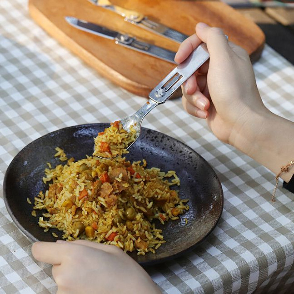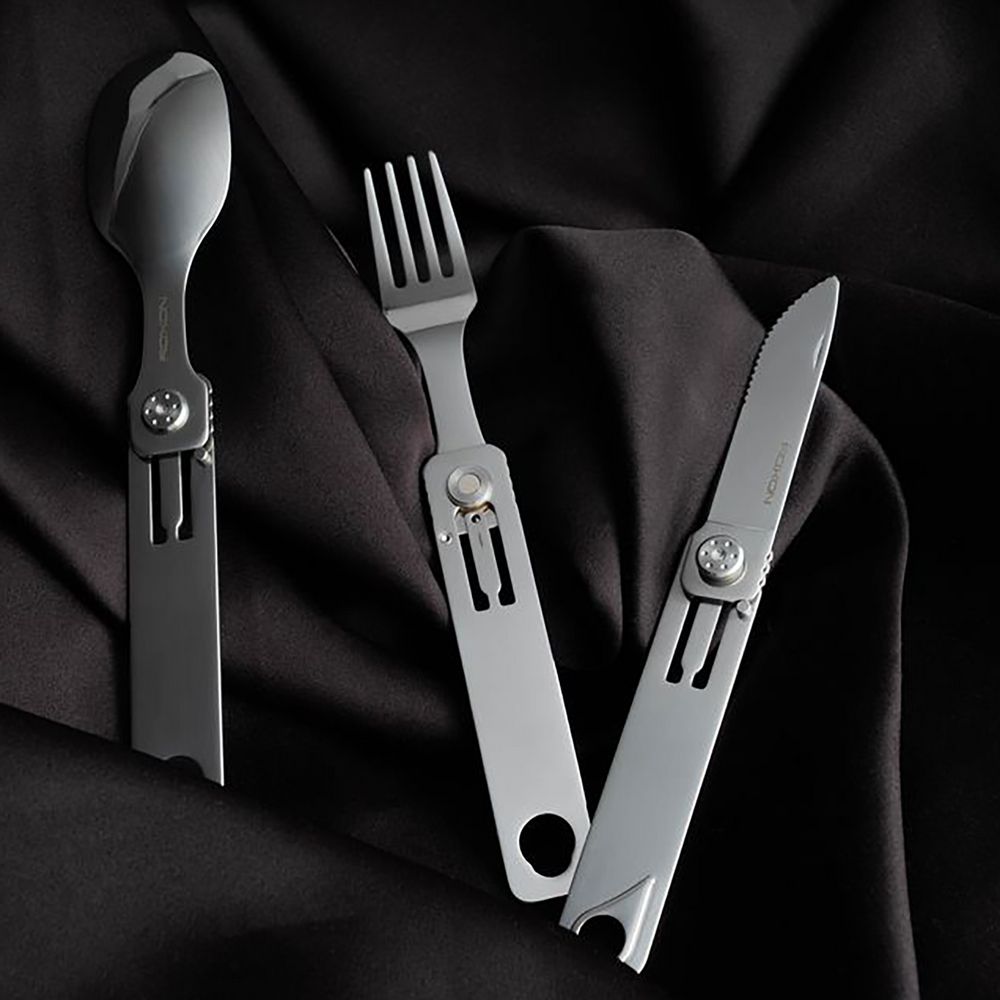 Набор столовых приборов C1 сделает туристические походы, пикники и другие занятия на свежем воздухе комфортнее. Ложка, вилка и нож легко складываются в компактную конструкцию для перевозки и раскладываются на три отдельных прибора — для использования по назначению.
