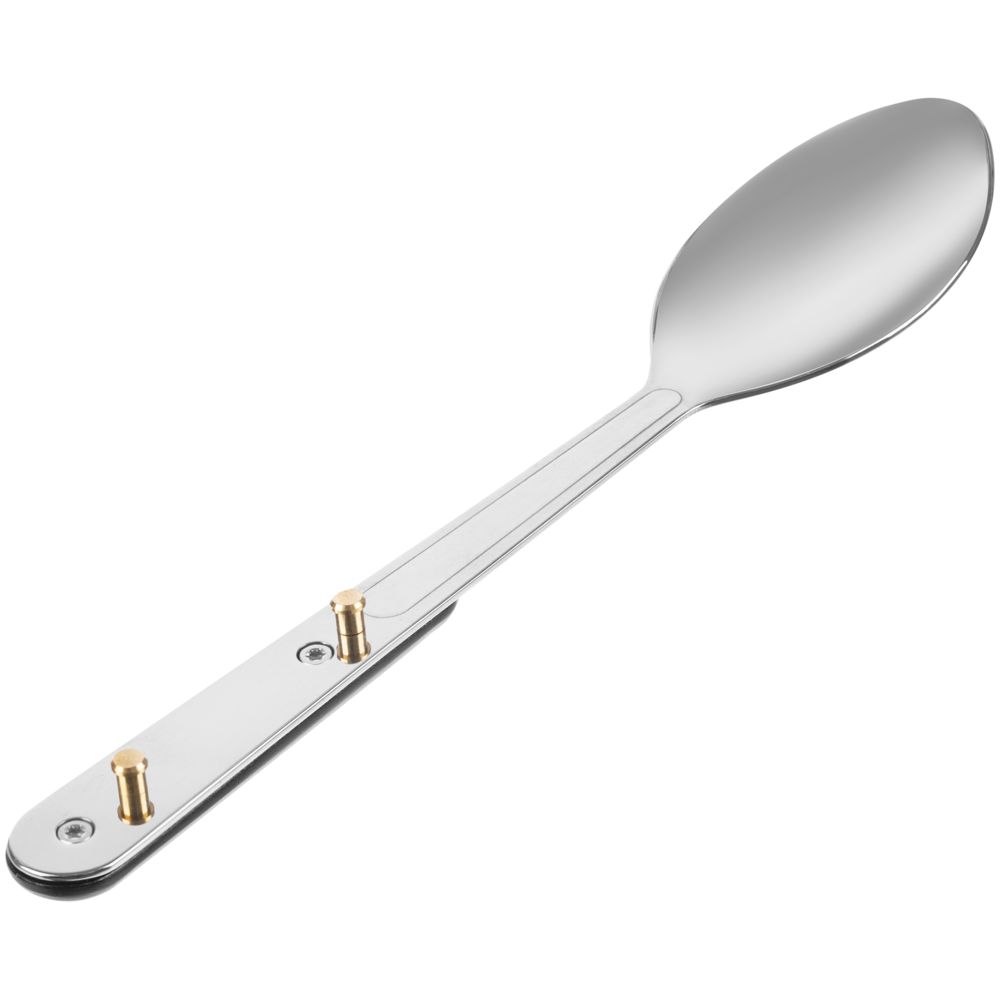 Набор столовых приборов из ложки, вилки и ножа с открывашкой с разборной конструкцией.