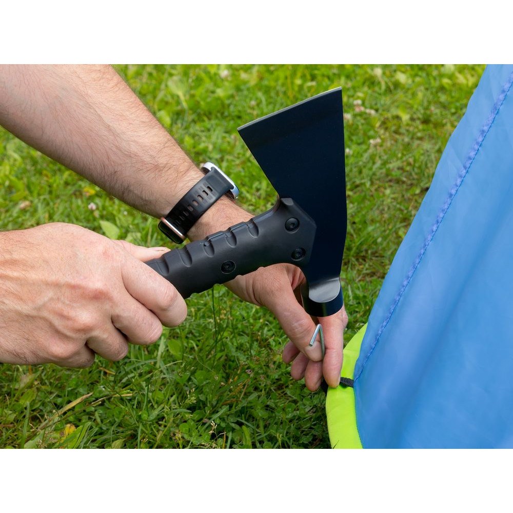 Туристический топор с молотком на обухе поможет нарубить дрова, расчистить место для стоянки, подготовить кострище и поставить лагерь.