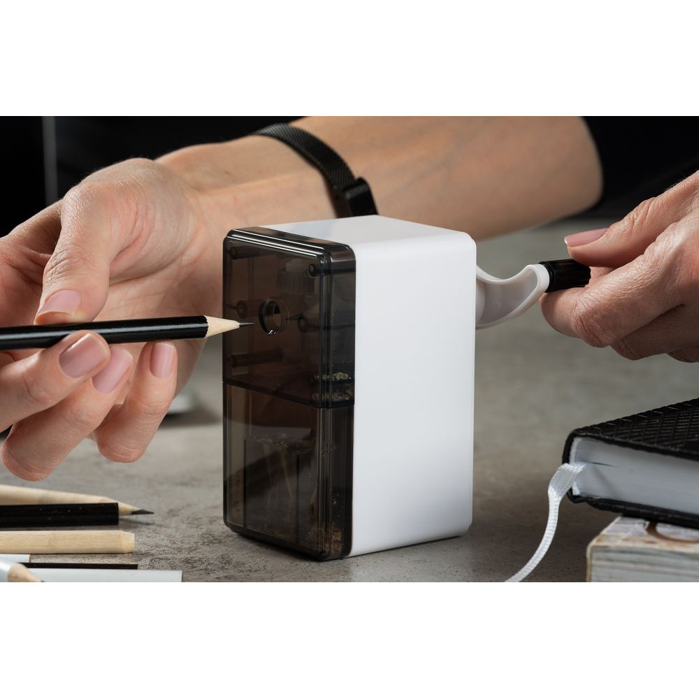 Вращающийся роликовый нож обеспечивает быструю и острую заточку карандашей диаметром до 8 мм. Точилка оснащена переключателем степеней заточки, что позволяет качественно заточить как цветные (с более тупым углом заточки), так и чернографитные карандаши.