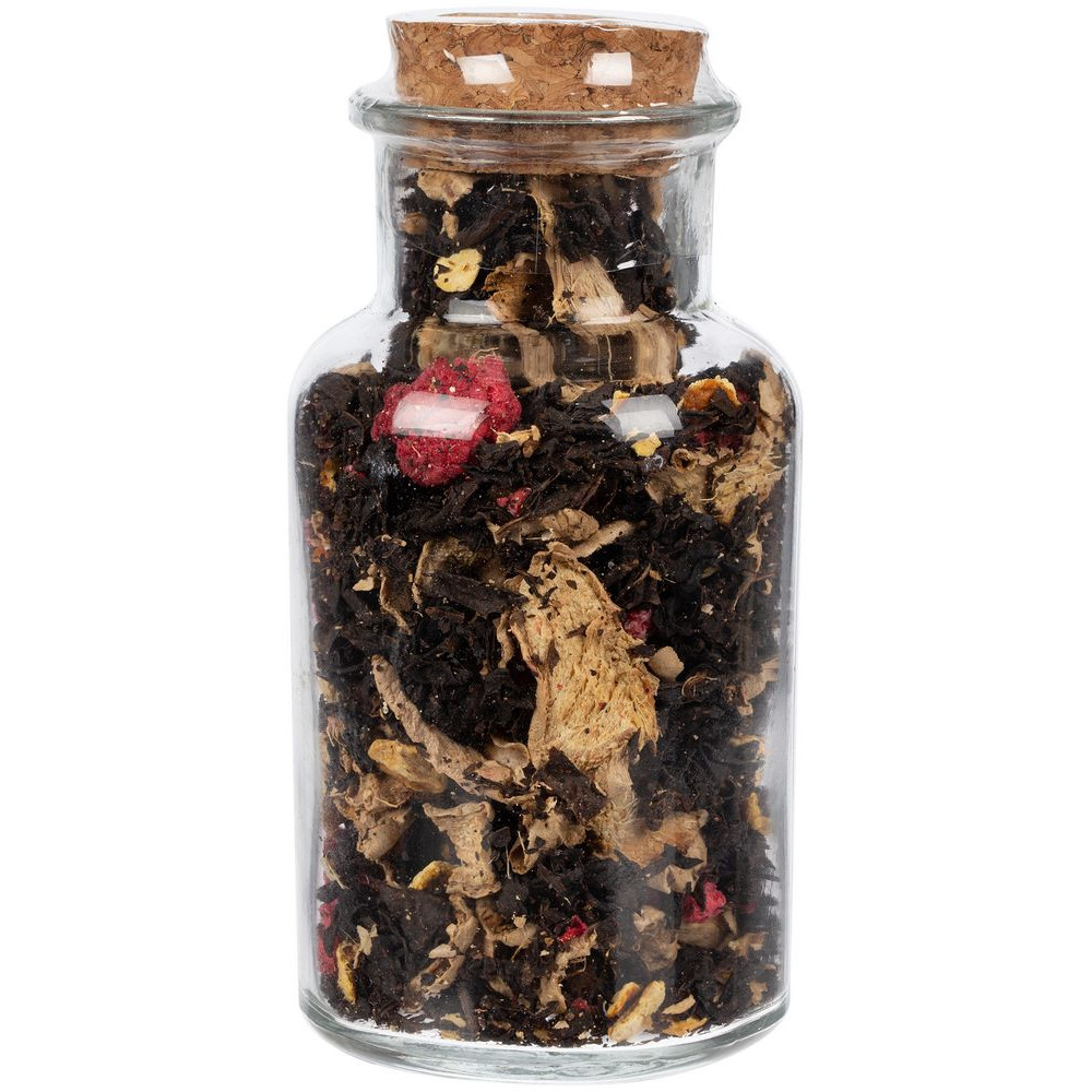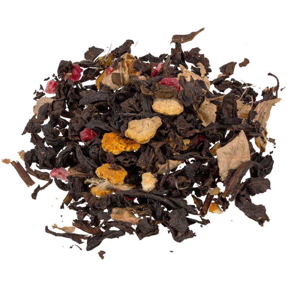 Состав: чай черный байховый крупнолистовой, кусочки имбиря, сок имбиря, апельсиновая цедра сушеная, малина сублимированная, ароматизатор натуральный «Малина».