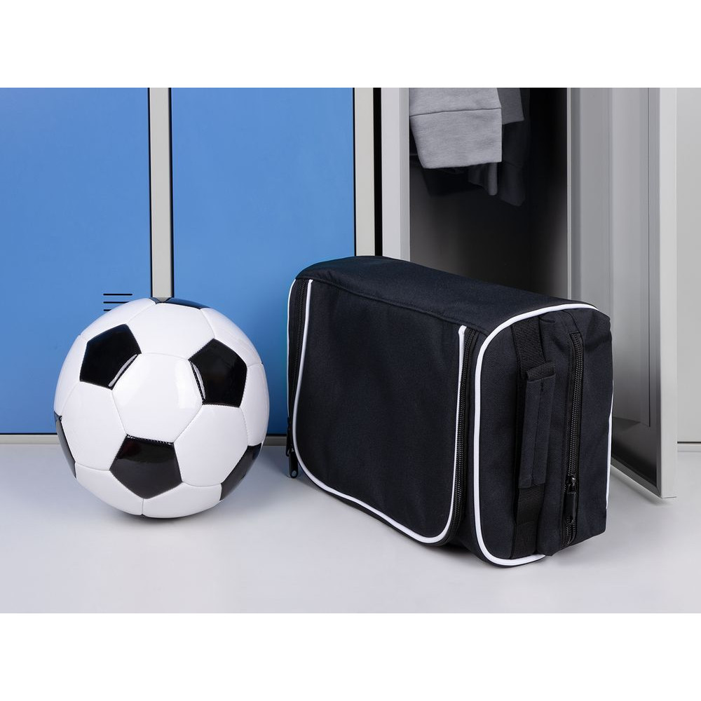 Благодаря боковой ручке Equipex удобно нести отдельно или доставать из большой спортивной сумки. Внешние и внутренние карманы позволяют хранить рядом с парой обуви важные мелочи: средства и аксессуары для ухода, пластыри или запасные носки. В нижней части сумки расположены вентиляционные вставки для проветривания.