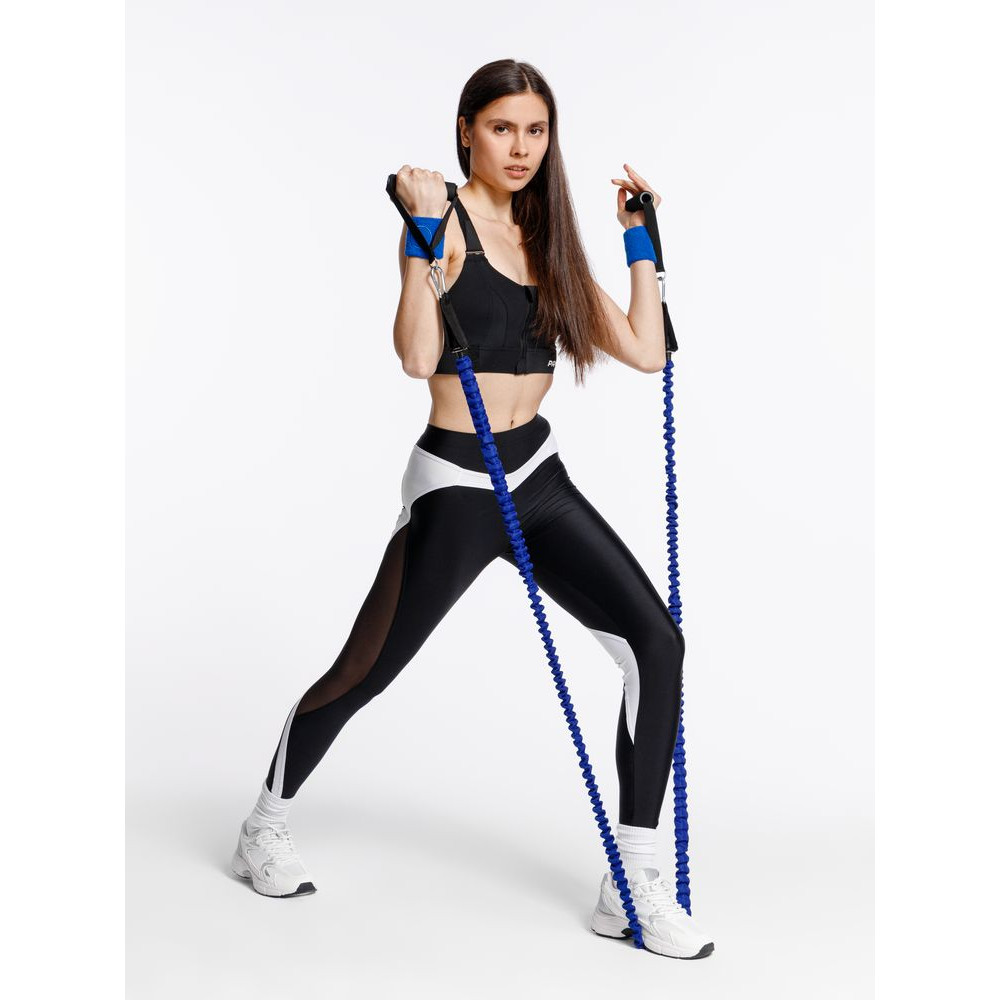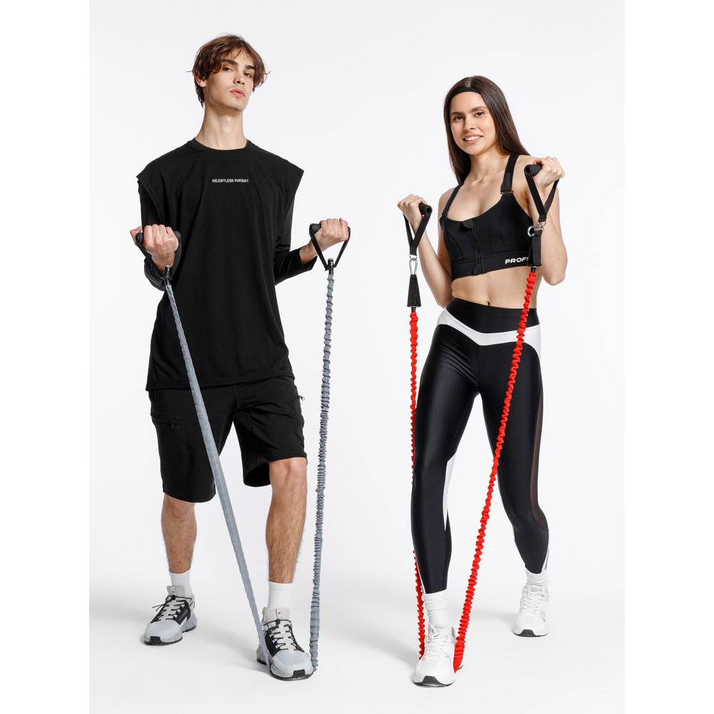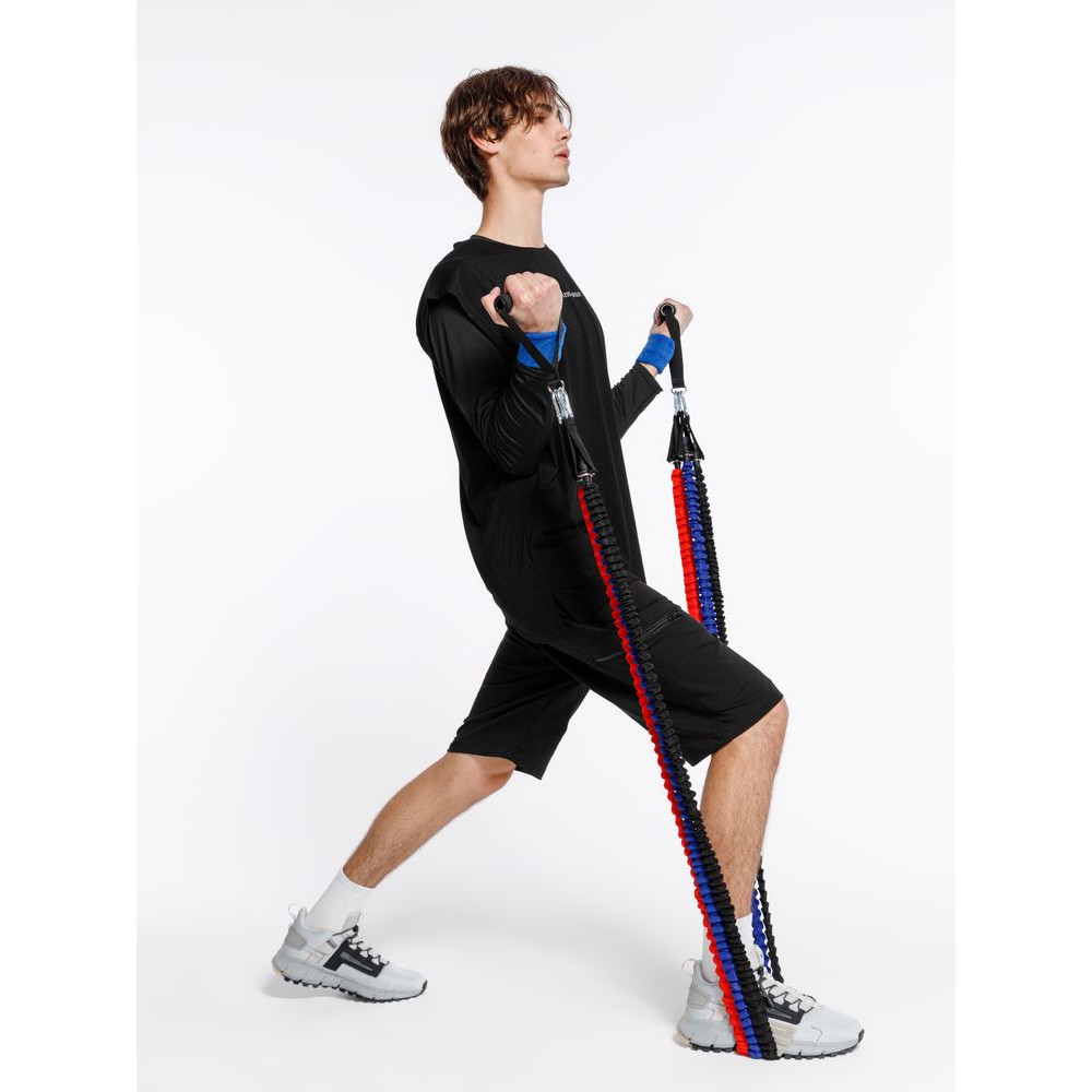 В набор входят 3 трубчатых эспандера с разной степенью нагрузки от 6,8 до 15,8 кг. Меняя и комбинируя их, можно усиливать или ослаблять нагрузку во время тренировки.