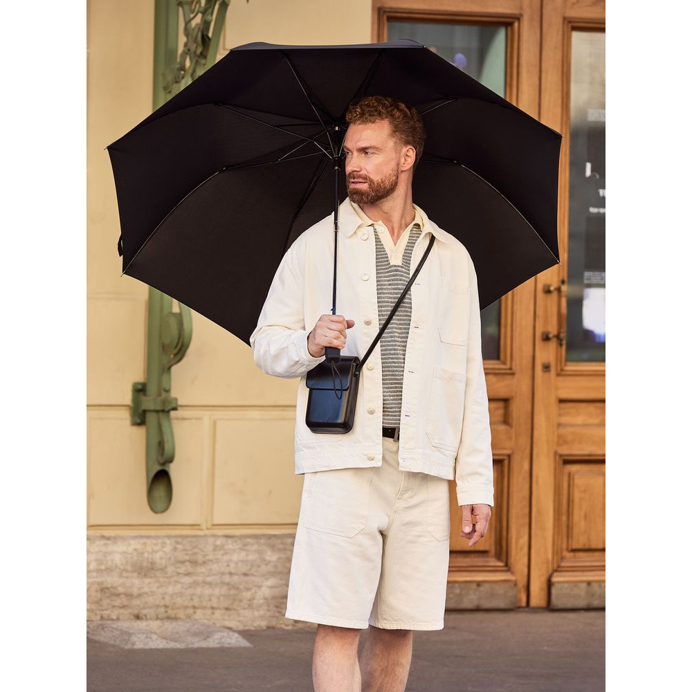 • Пластиковая матовая эргономичная ручка с эластичной петлей и кнопкой автоматического открывания зонта
