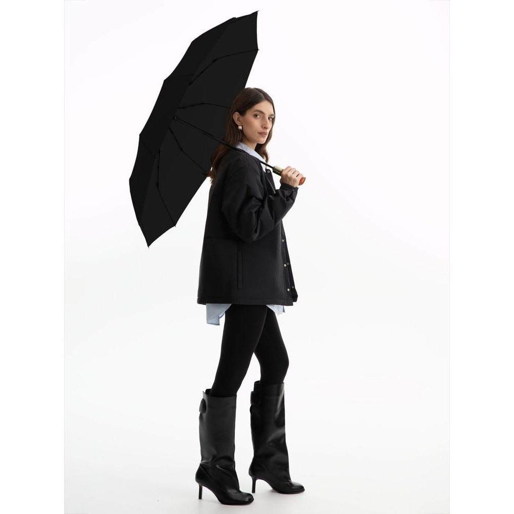 Автоматический механизм позволяет раскрыться за секунду. Плотная ткань купола обеспечивает высокую прочность и устойчивость к разрывам, при этом оставаясь легкой. А ручка из натурального дерева обеспечивает комфортный захват и добавляет зонту благородности.