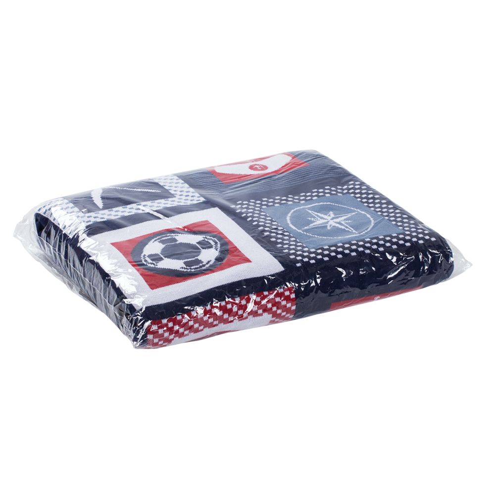 В каждой части общего рисунка жаккардового пледа изображены главные морские символы.