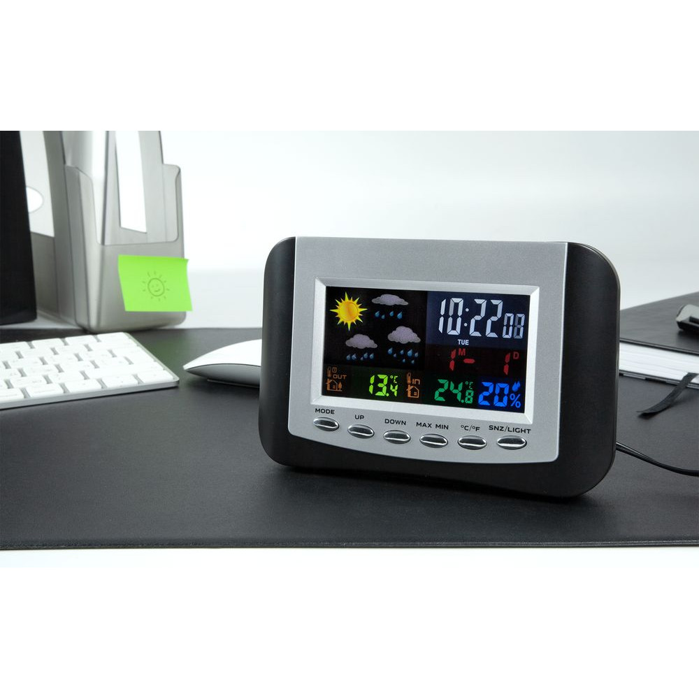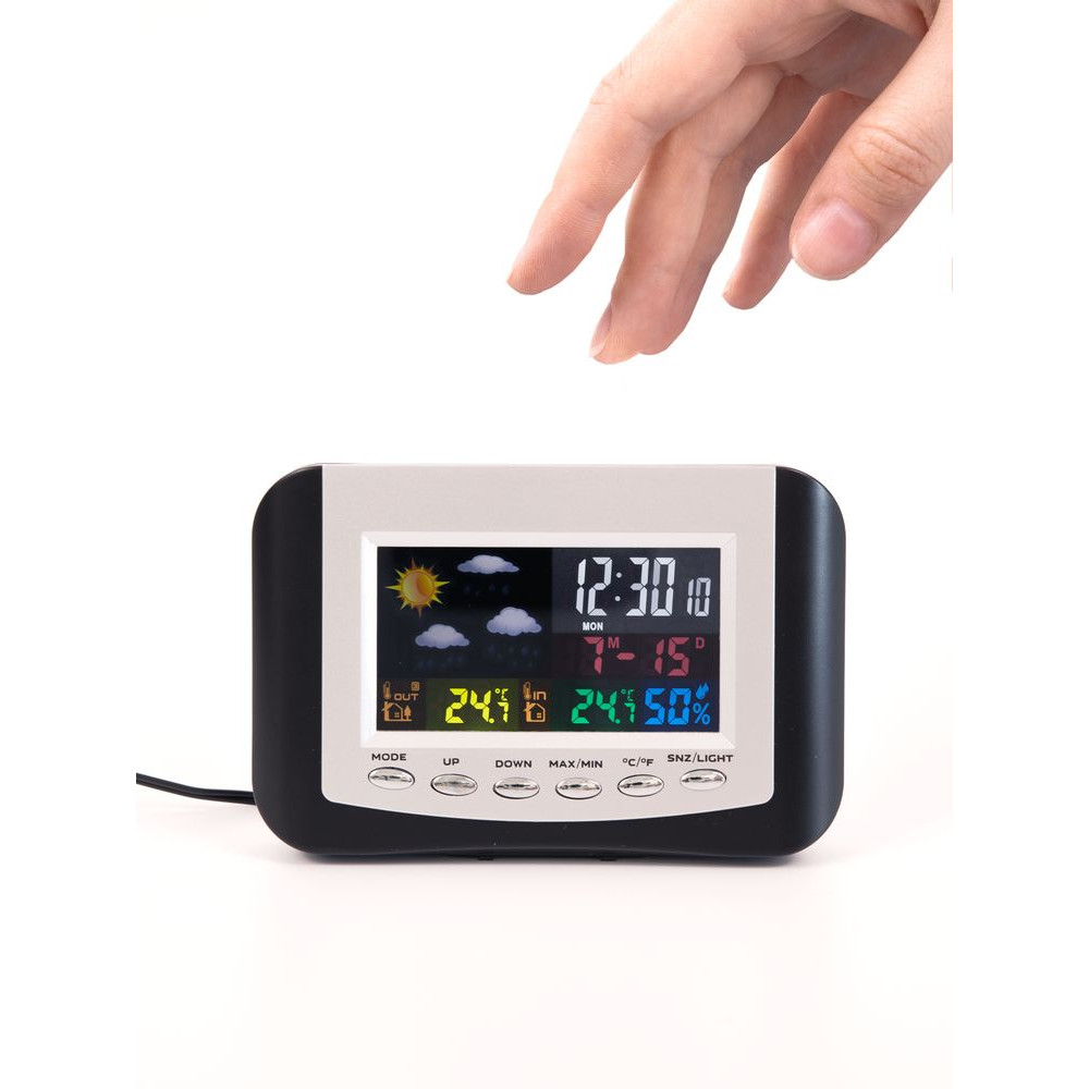 Метеостанция с цветным дисплеем и выносным датчиком точно покажет погоду в доме и за окном.