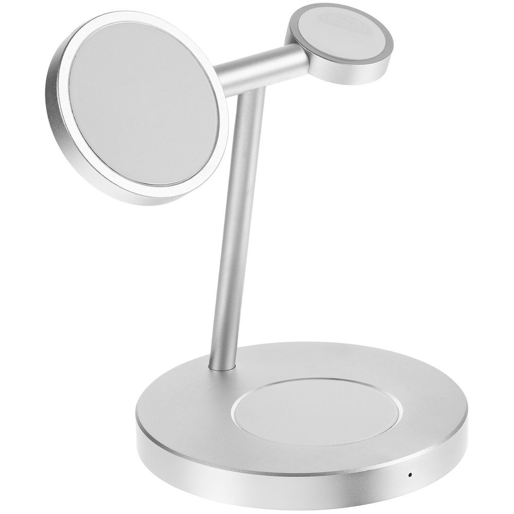 Станция может заряжать одновременно 3 устройства: беспроводные наушники с соответствующей функцией беспроводного заряда, смартфон, часы Apple Watch 2–8. Смартфоны iPhone 12–15 удерживаются на станции встроенными в их корпус магнитами. Прочие телефоны рекомендуем дополнить магнитным стикер-адаптером Magmate для надежного удержания на зарядной области.
