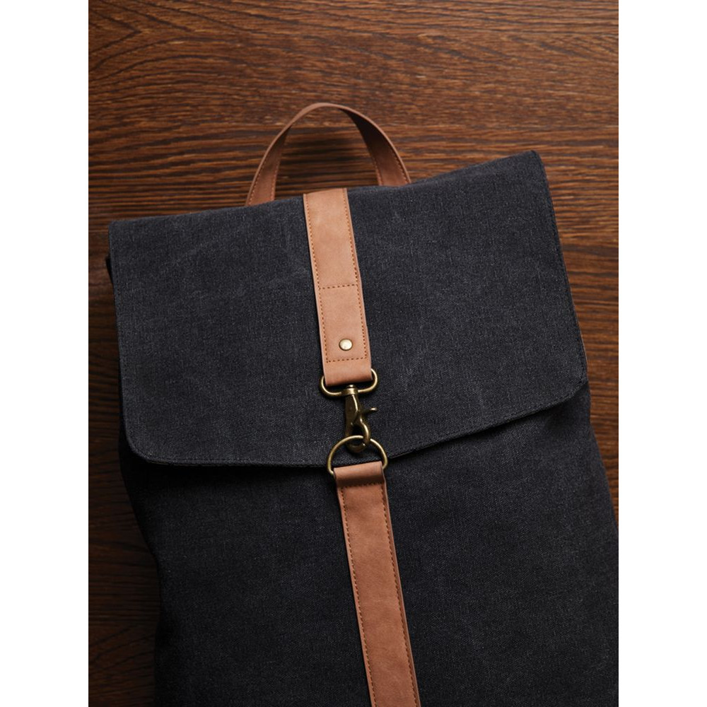 Рюкзак Bosler изготовлен из переработанного канваса: он не только выглядит модно, но и демонстрирует заботу об окружающей среде. Рюкзак оснащен отделением для ноутбука и привлекает внимание контрастными деталями из полиуретана и латунной фурнитурой.